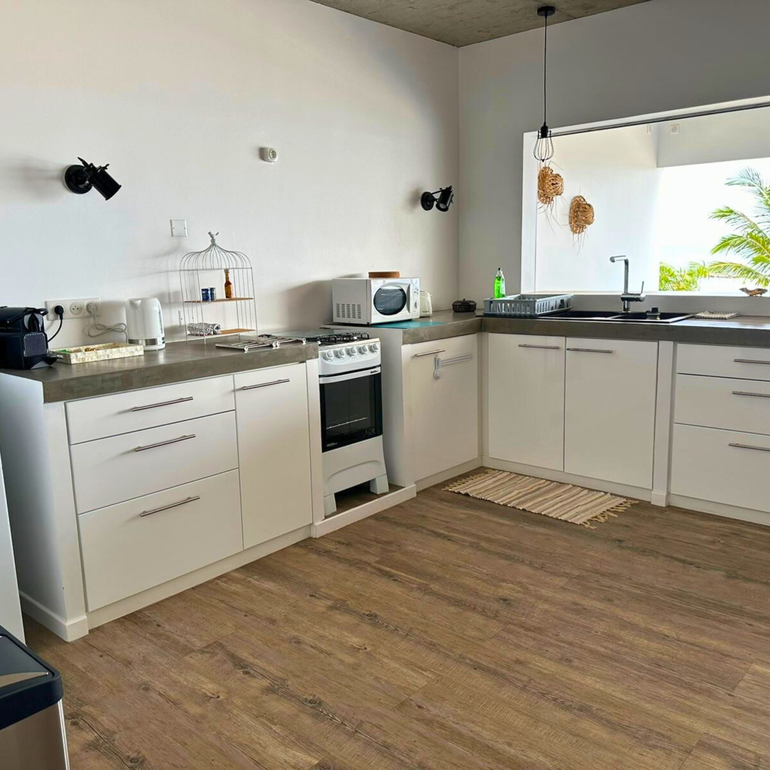 Séjournez dans cet appartement de 75m2, en rez-de-chaussée d’un petit immeuble d’un étage avec piscine et en bord de lagon, alliant le confort d'un hôtel et les avantages d'une pension familiale.