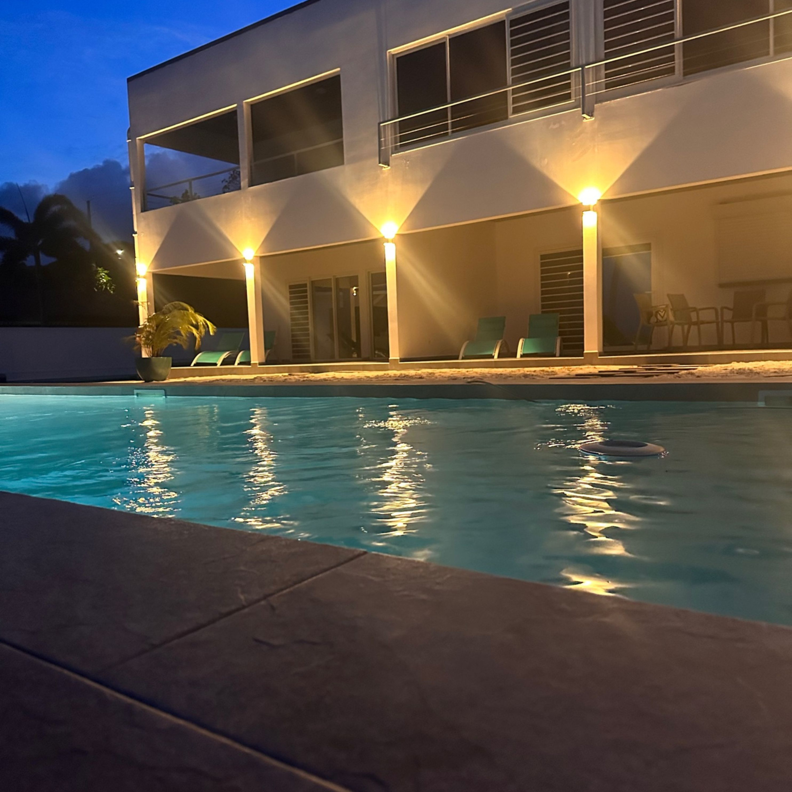 L’espace où vous apprécierez passer la plupart de votre temps libre sera la terrasse en bord de piscine avec vue imprenable sur le lagon. Elle est équipée d’une table et de chaises pour déguster vos repas et petits-déjeuners le matin.