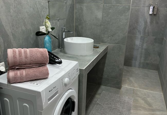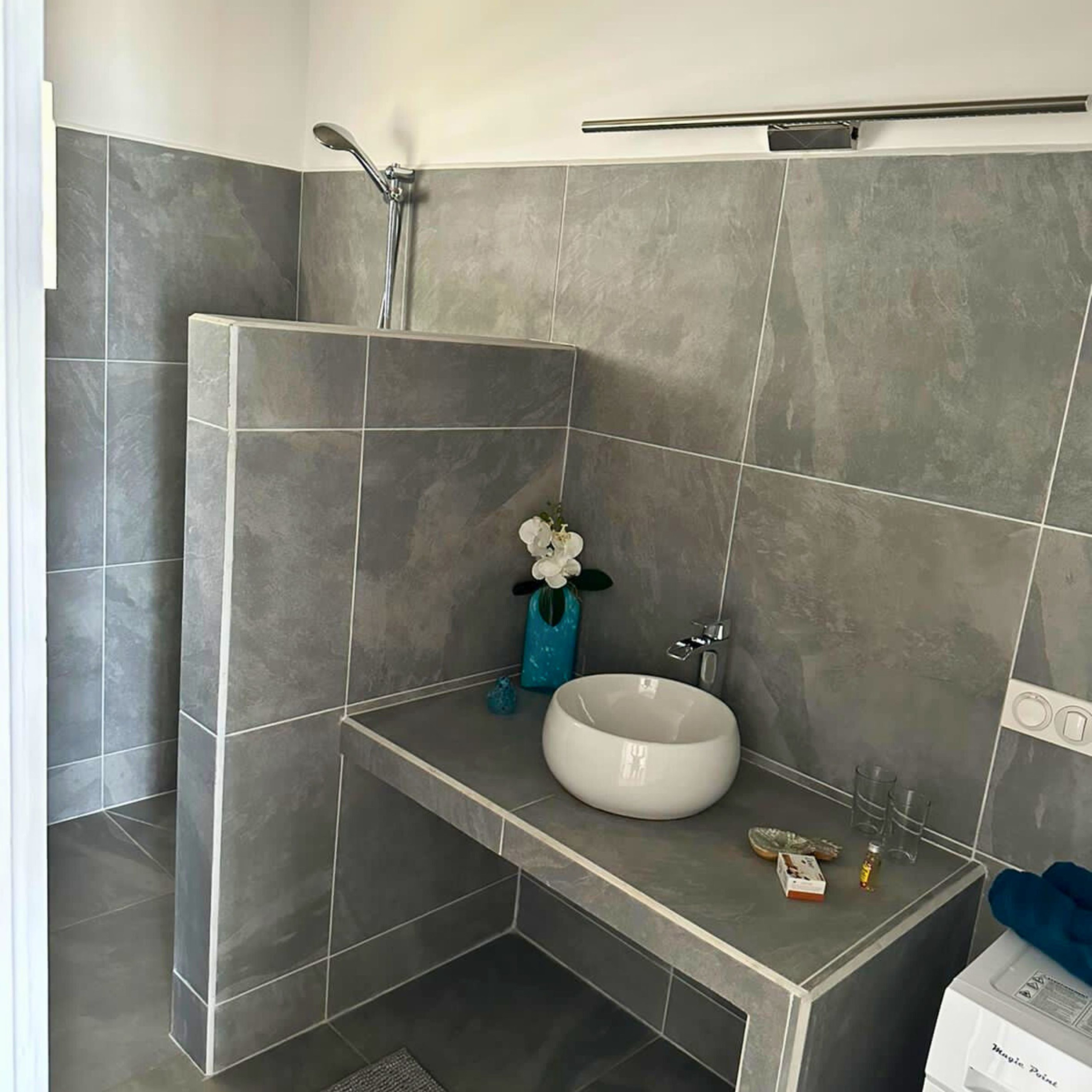 La salle de douche, moderne et épurée, est dotée d’une douche à l’italienne, d’un coin lavabo et d’un toilette. Le nécessaire de toilette (gel douche et shampoing, sèche-cheveux) vous sera gracieusement mis à disposition par vos hôtes.