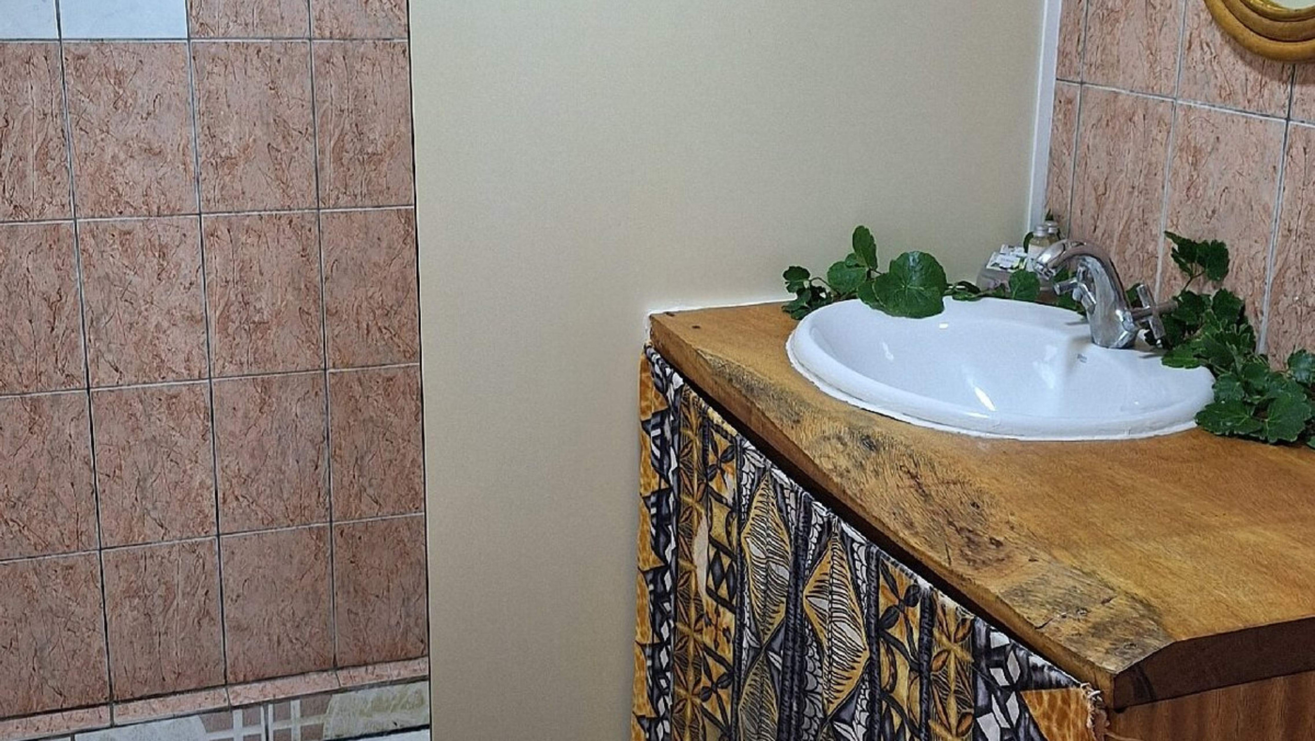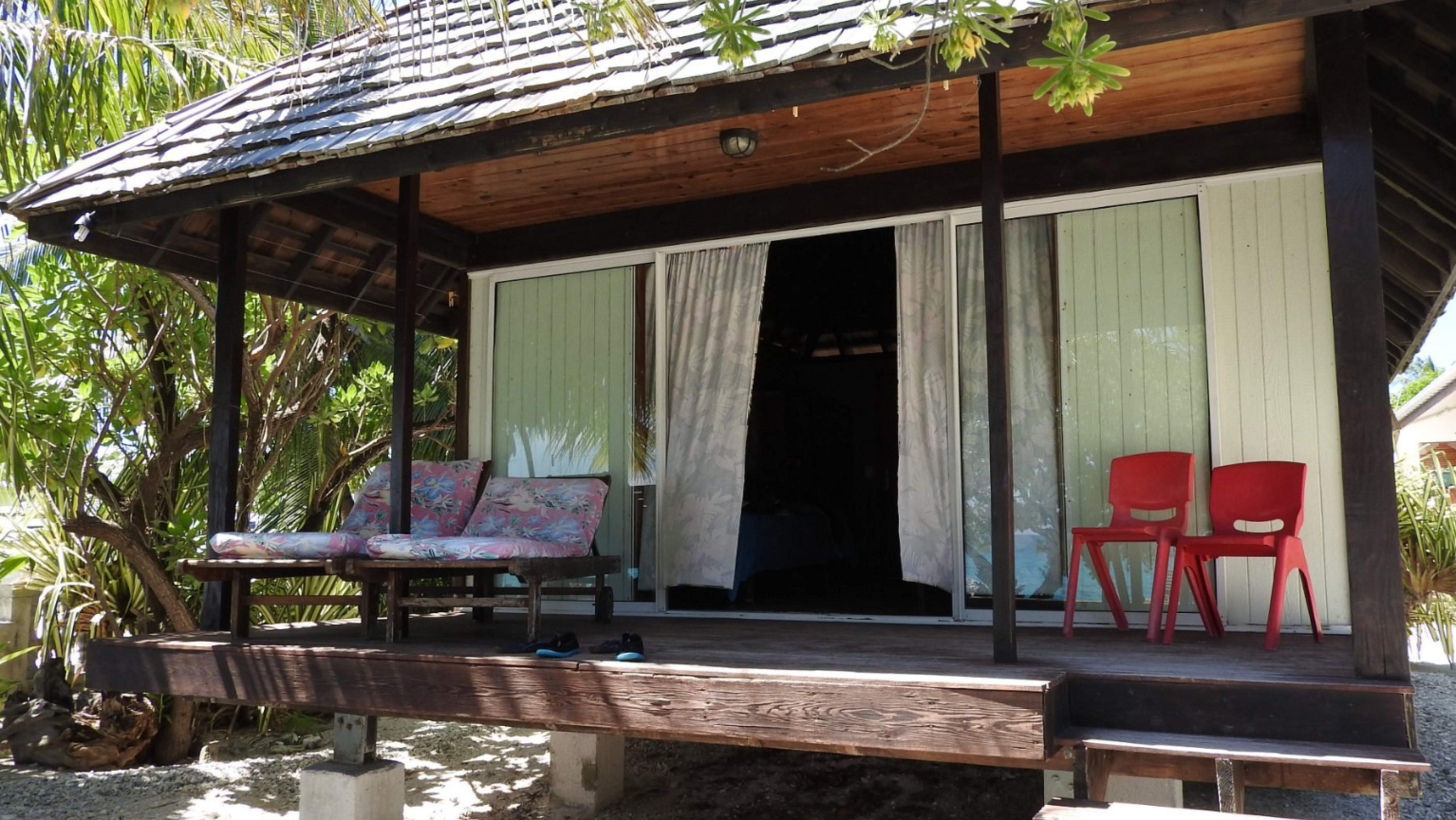Ce bungalow dispose d’un lit queen-size, d’une salle d’eau privée, ainsi que d’une terrasse couverte pour profiter du calme du jardin et de la proximité de l’océan. Le ventilateur et la moustiquaire assurent des nuits agréables dans la douceur des Tuamotu.