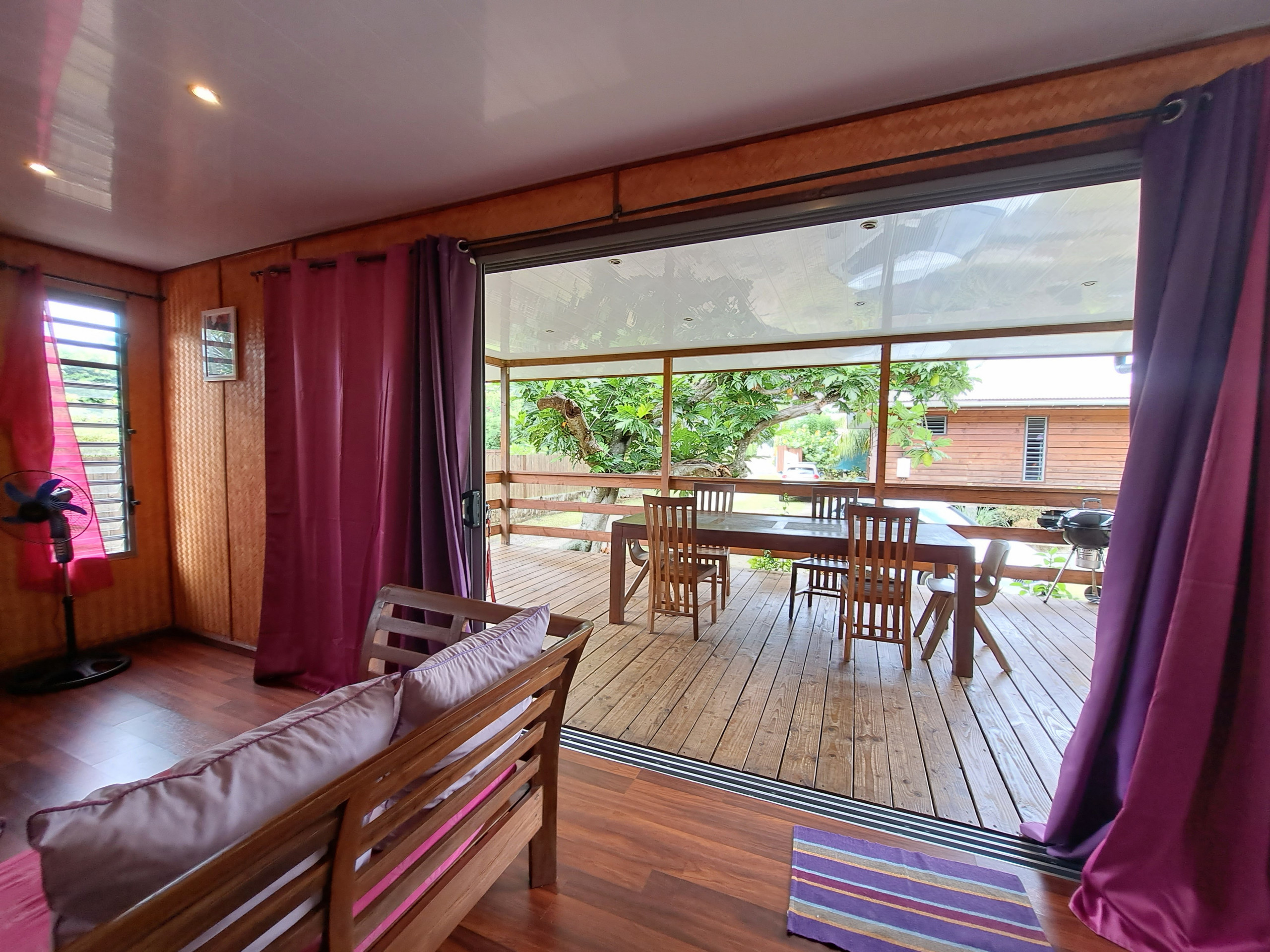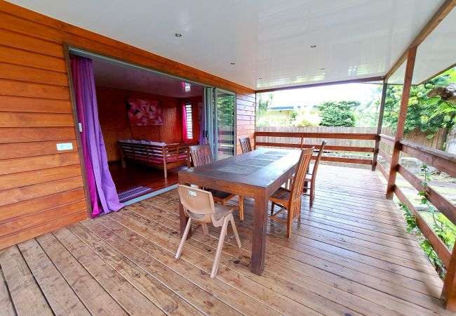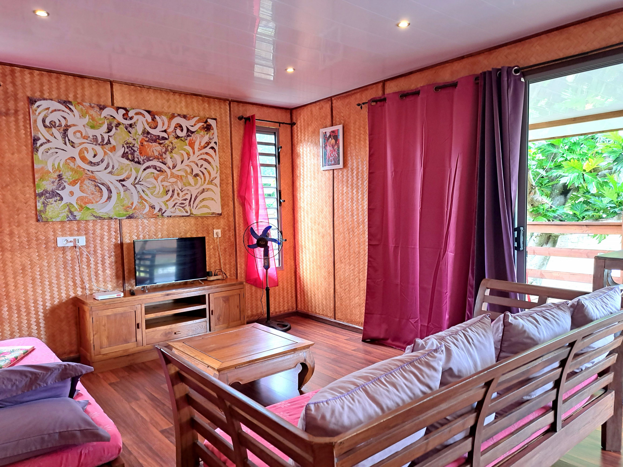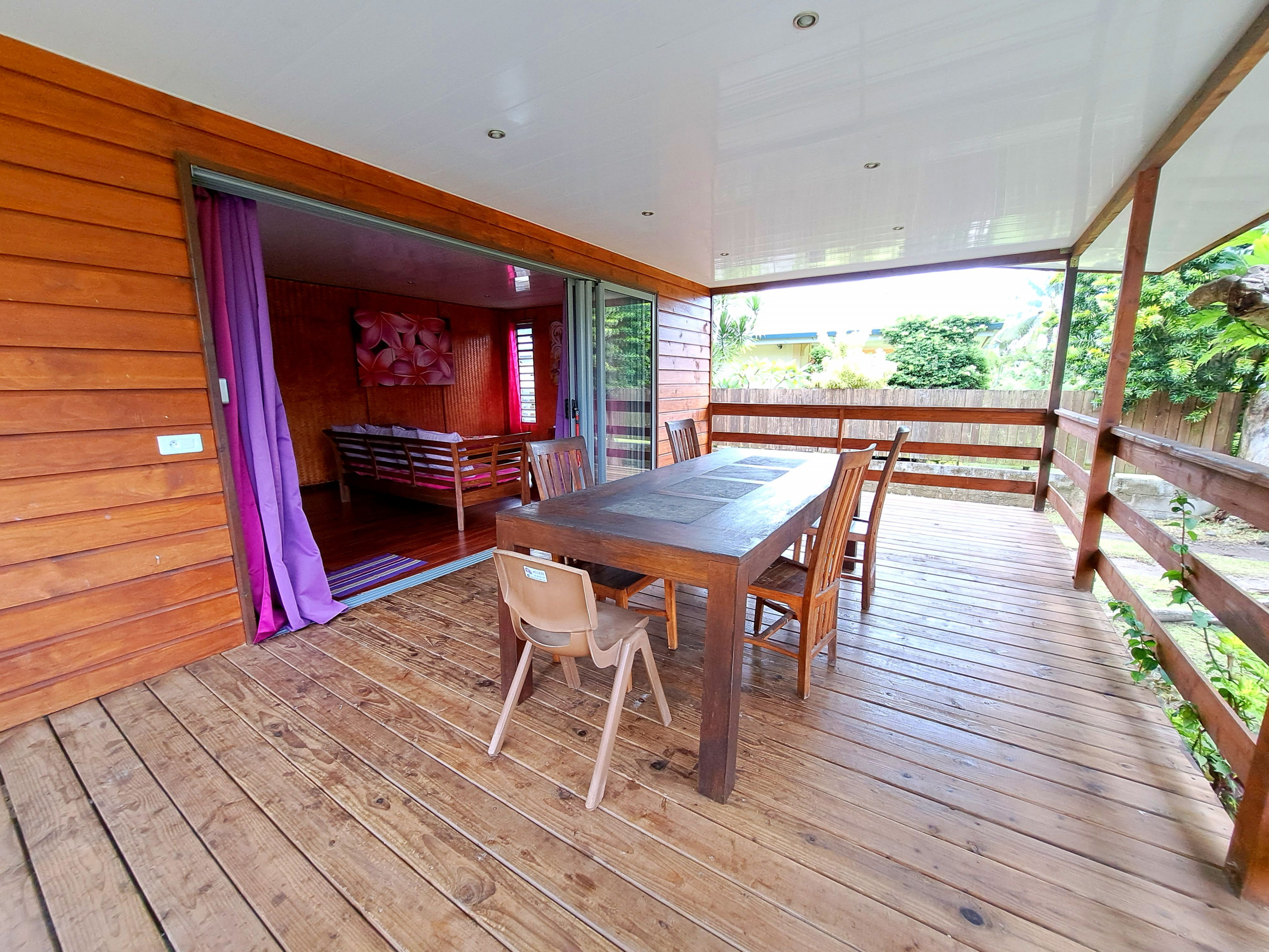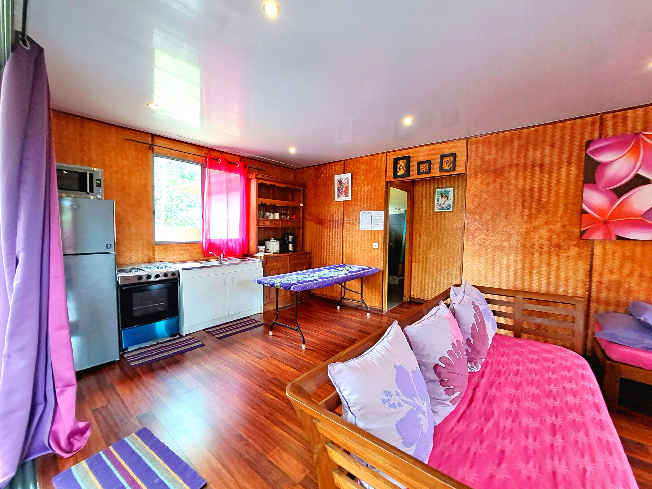Ce qui signifie en tahitien rouge . Situé sur l’île soeur de Tahitit à seulement 25 min du quai des ferrys au calme côté montagne . Pour un séjour au calme dans un environnement paisible et reposant