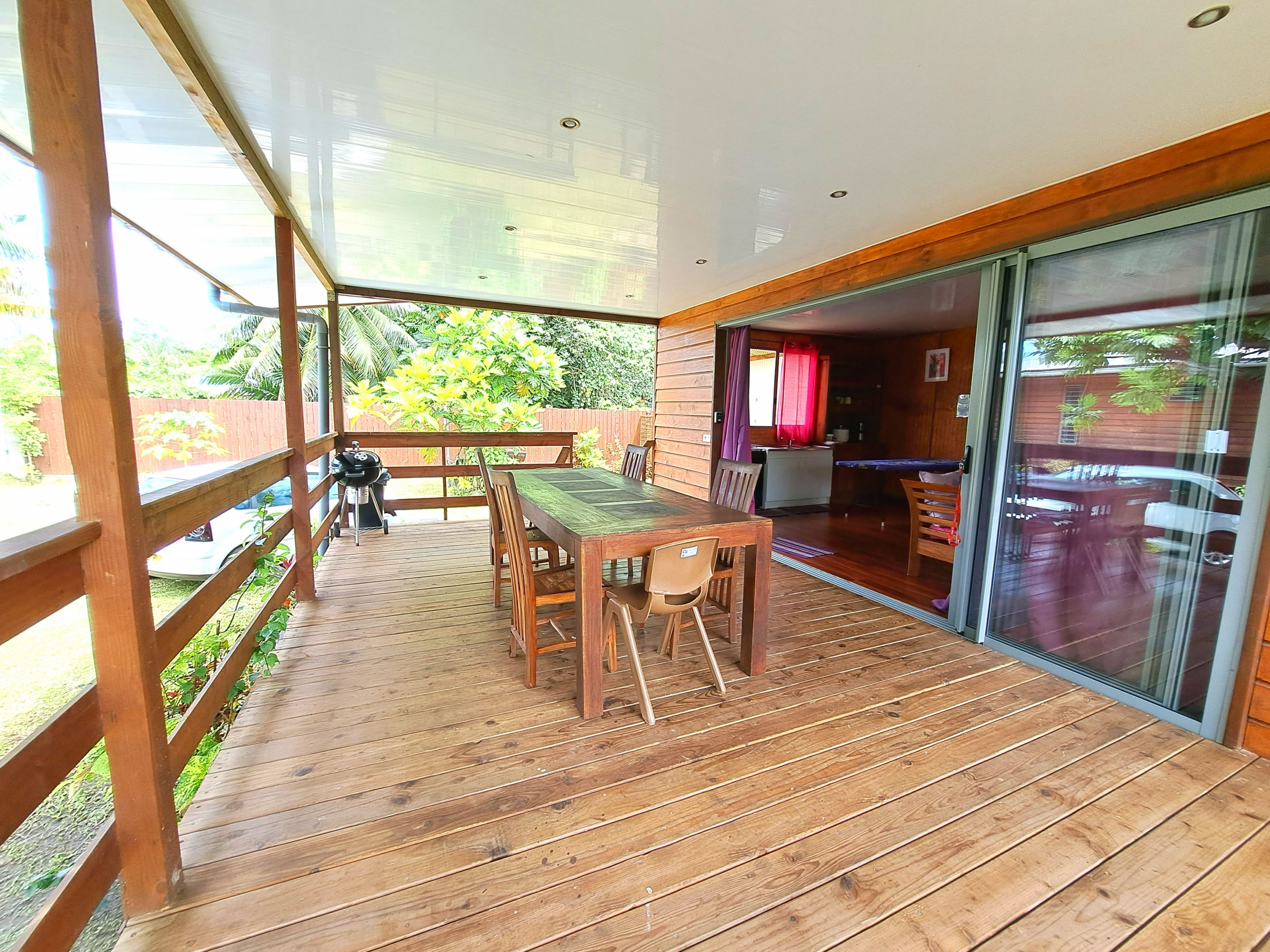 Vous pourrez prendre vos repas sur la grande terrasse couverte. Un barbecue est également mis à votre disposition.