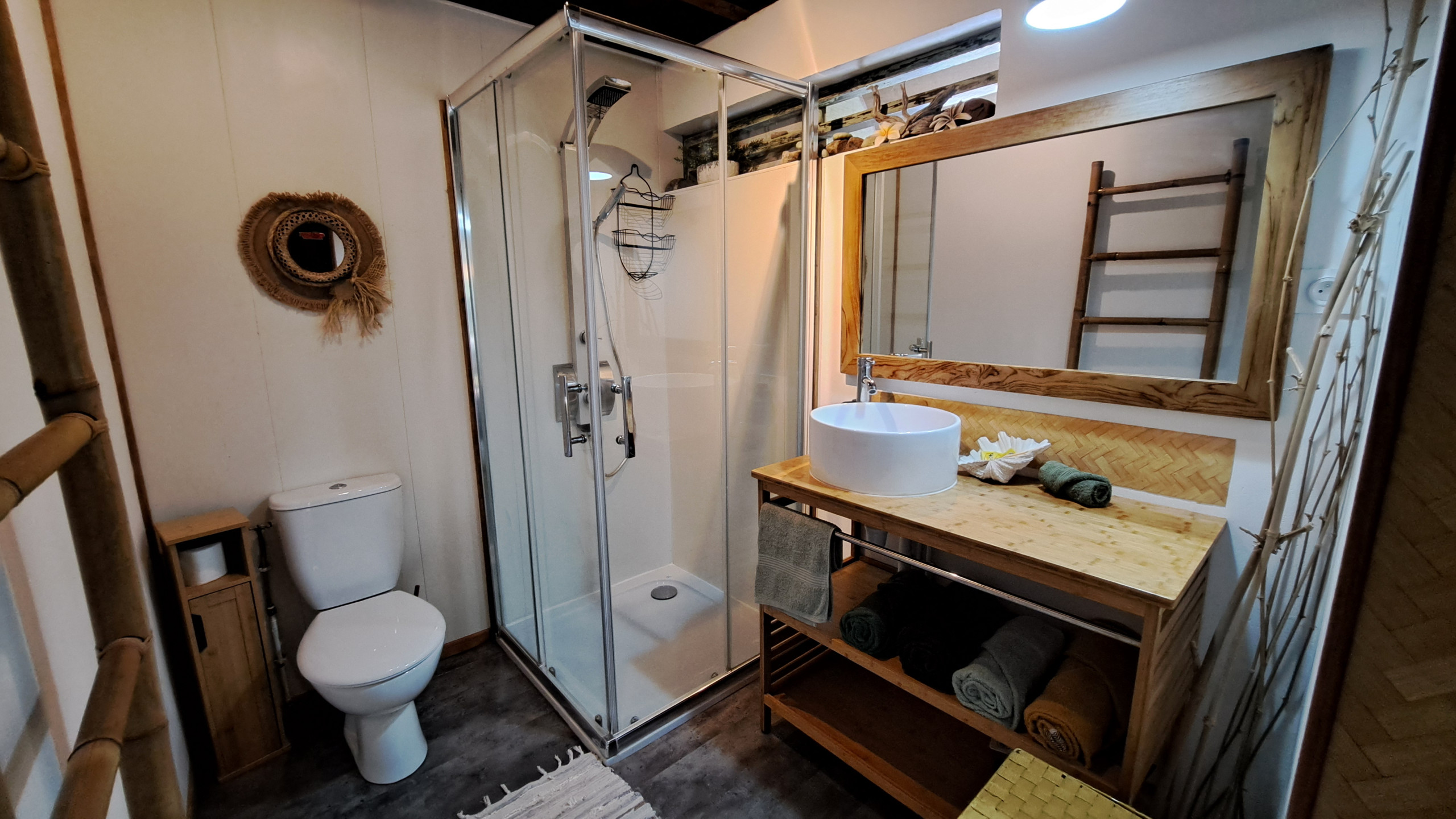 La salle d'eau avec douche et wc est également située en rez-de-chaussée.