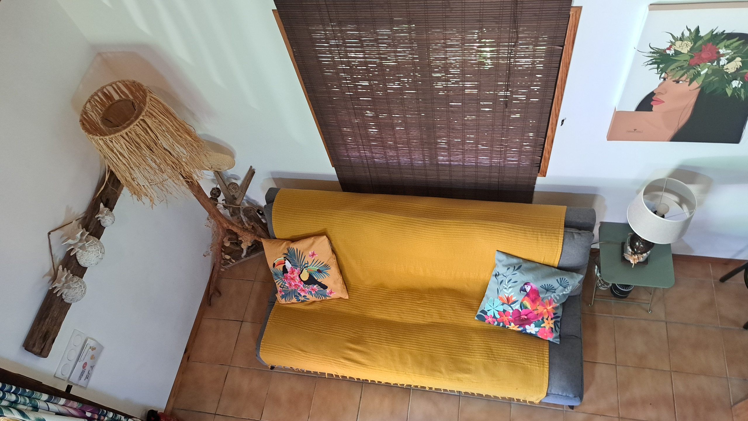 Idéal pour 4 personnes voire 6, ce bungalow en bois à la décoration soignée et personnalisée est entièrement refait à neuf avec des matériaux locaux de qualité. Il peut accueillir une 5ème personne dans le canapé du salon.