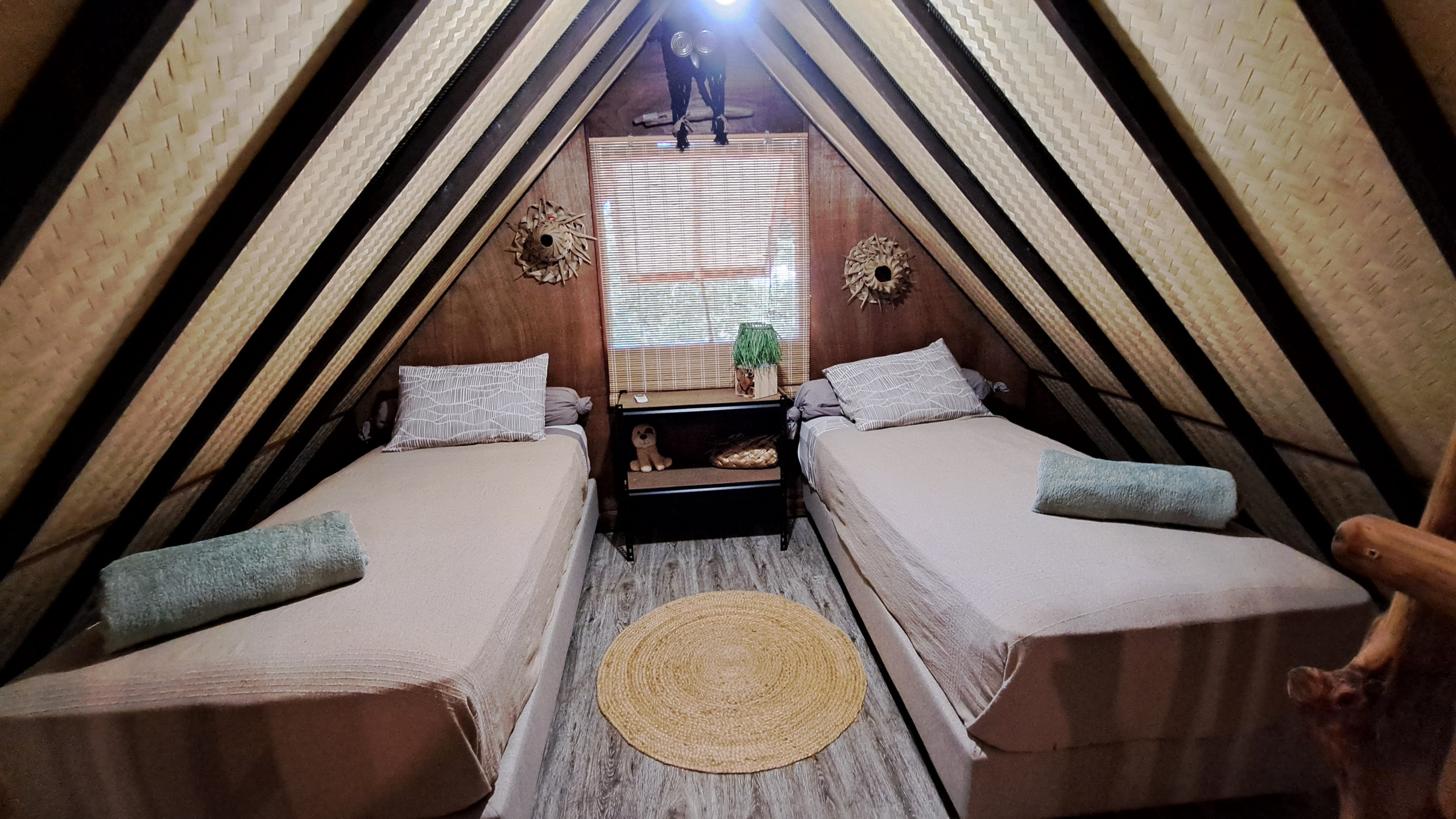 une 1ère chambre composée de 2 lits simples avec un rafraichisseur d’air