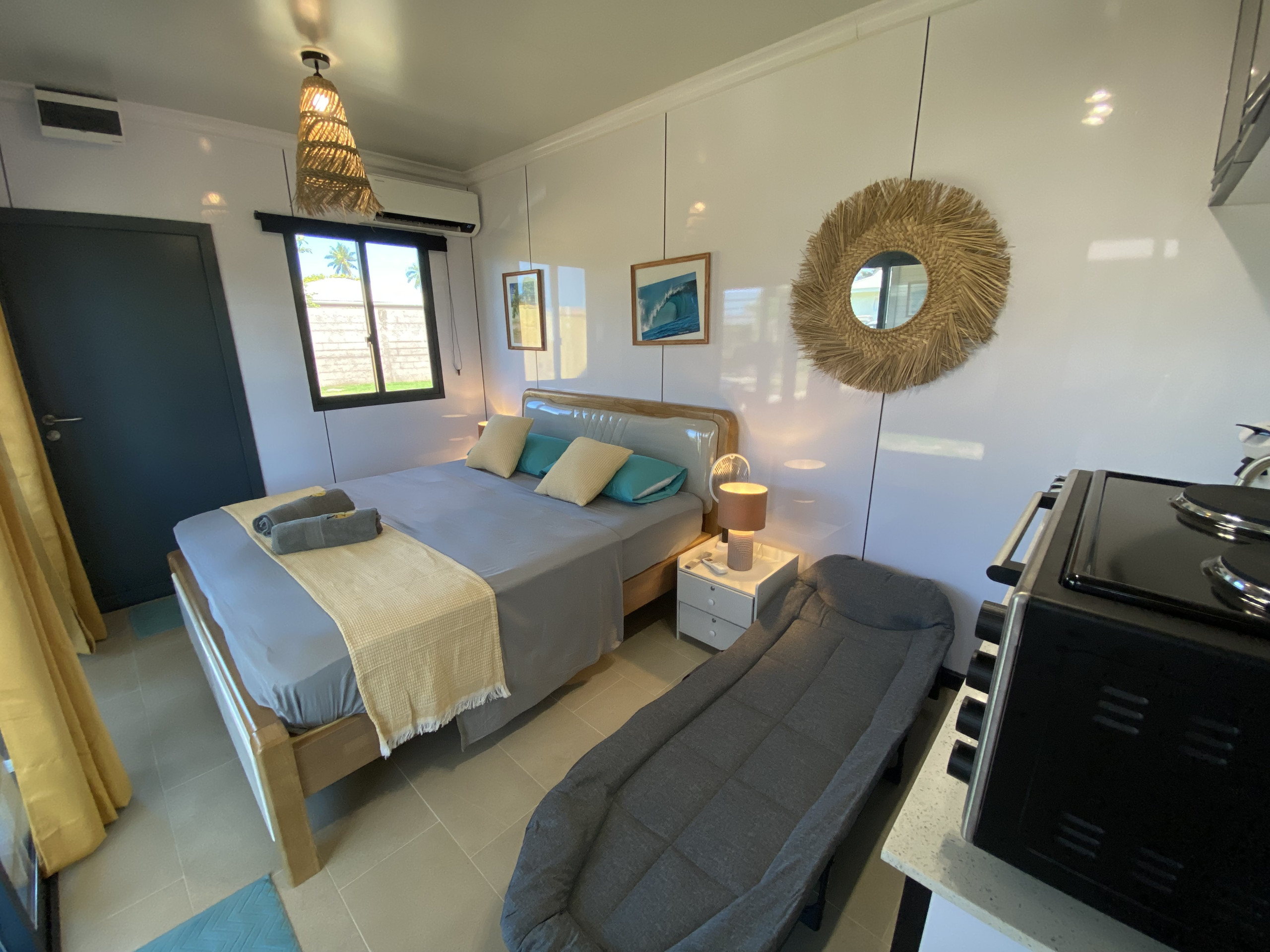 Entièrement climatisé, le bungalow accueille confortablement 2 adultes et 1 enfant de moins de 12 ans (matelas d’appoint sur demande).