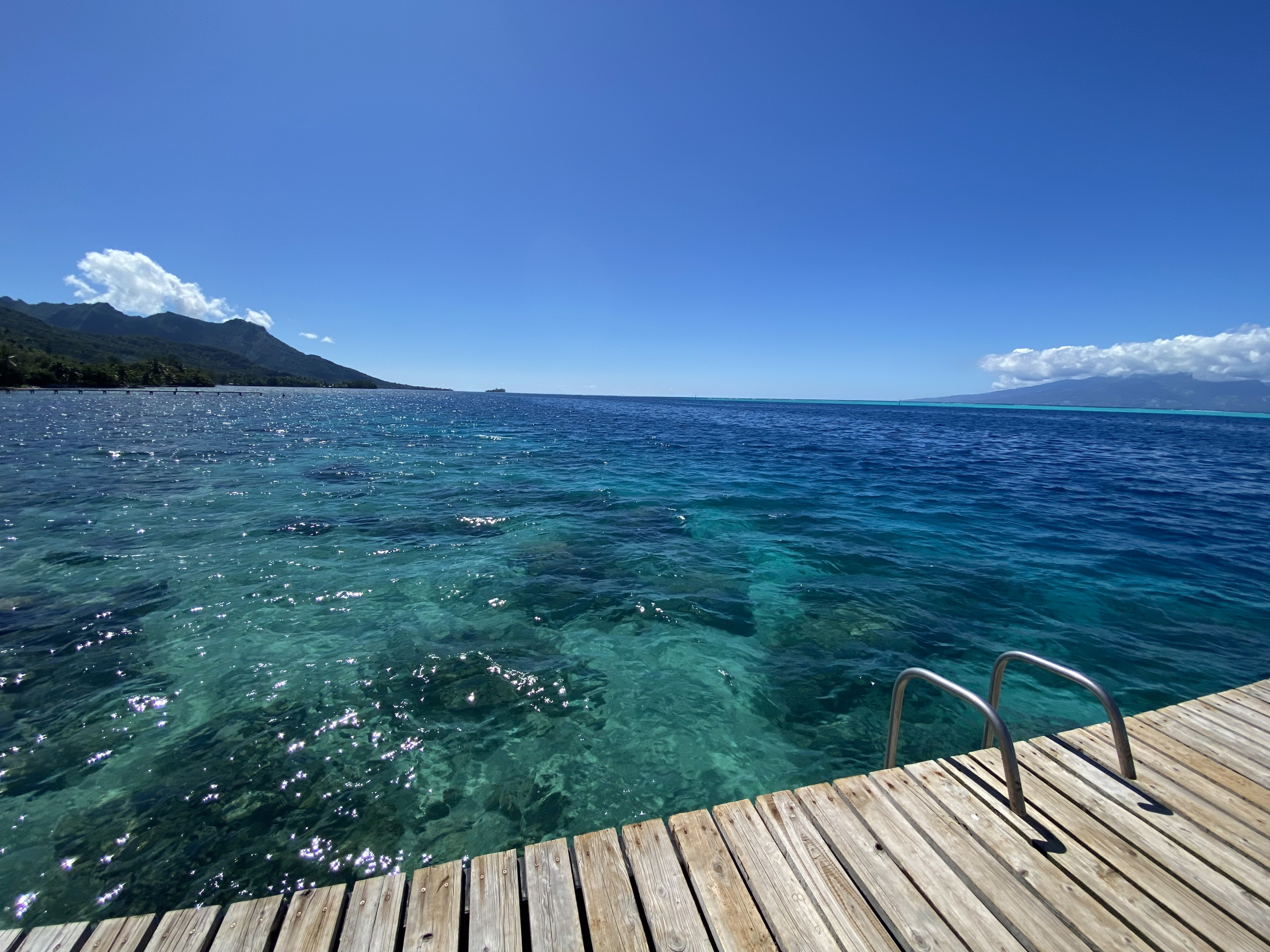 Accès direct à la plage privée, avec un ponton privatif pour contempler le lagon ou vous baigner à toute heure