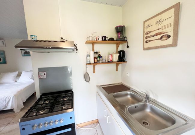 Le Fare Piti, idéal pour un couple, est un logement de 35 m2composé d’une pièce principale avec :