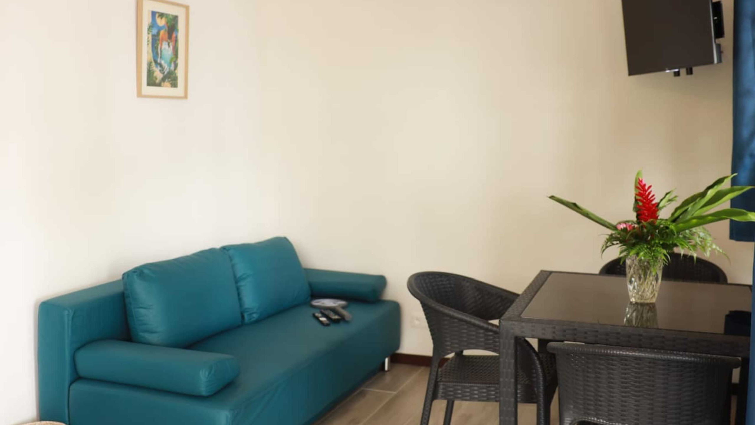 Offrez-vous une escapade idyllique au Bungalow Areiti, un véritable cocon de 42 m² à Teahupo'o, parfait pour une escapade à deux. Ce charmant bungalow, climatisé, vous accueille avec une chambre cosy dotée d'un lit queen-size et d'un canapé convertible.