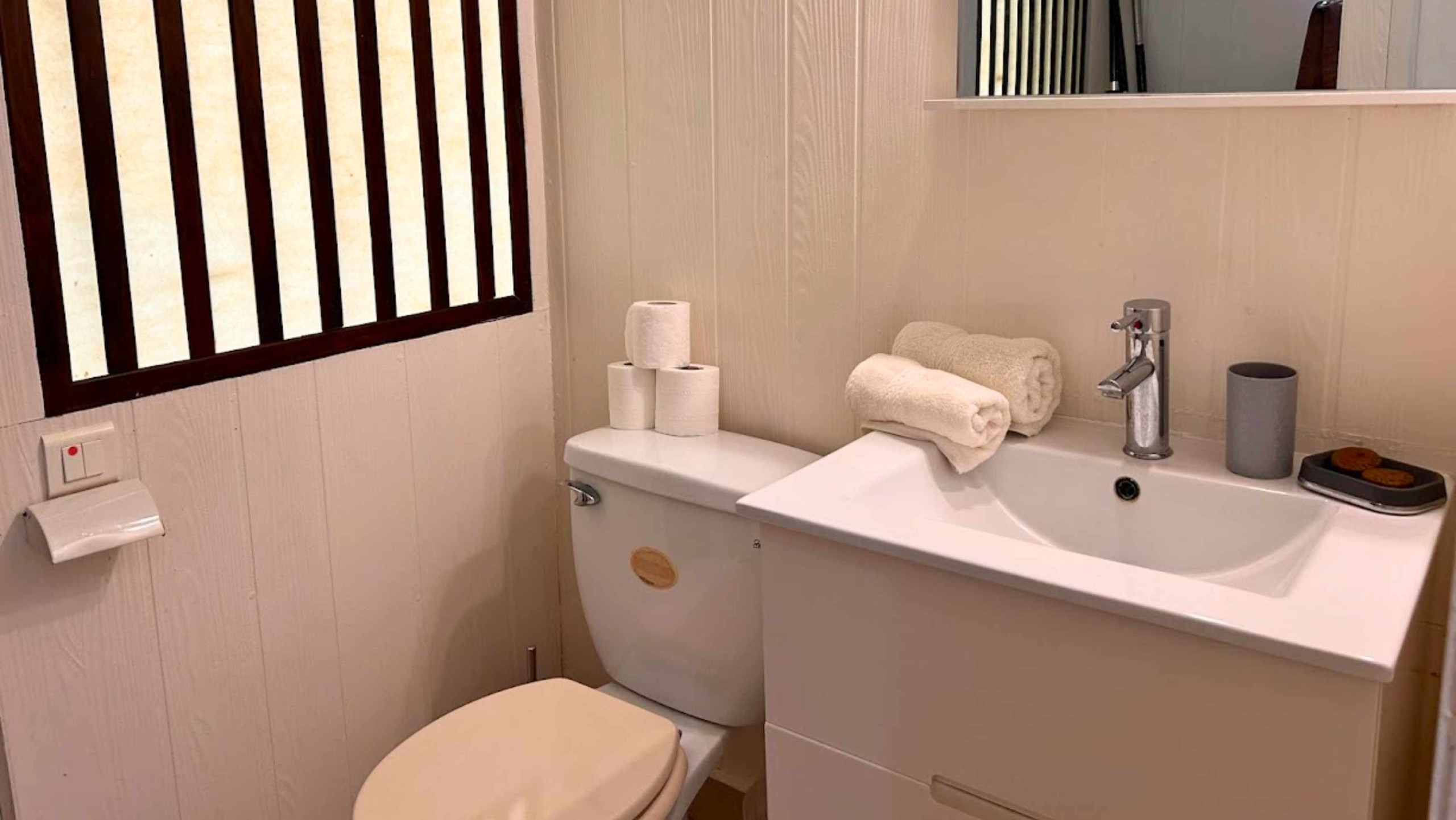 Le Fare se compose de 2 chambres confortables et climatisées, et de 2 salles de bain. Le séjour, possède une télévision écran plat, d’où vous pourrez suivre ou découvrir les programmes Polynésien et français. Cette pièce, peut également accueillir 2 personnes supplémentaires, grâce à ses 2 canapés lits simples. La cuisine, est entièrement équipée et fonctionnelle, afin de préparer des dîners Top Chef et ainsi, ravir les papilles de vos proches avec les produits frais de l’île. La terrasse, sera votre endroit préféré. Celle-ci est aménagée et meublée pour y prendre vos repas, ou tout simplement vous détendre en sirotant un petit cocktail.