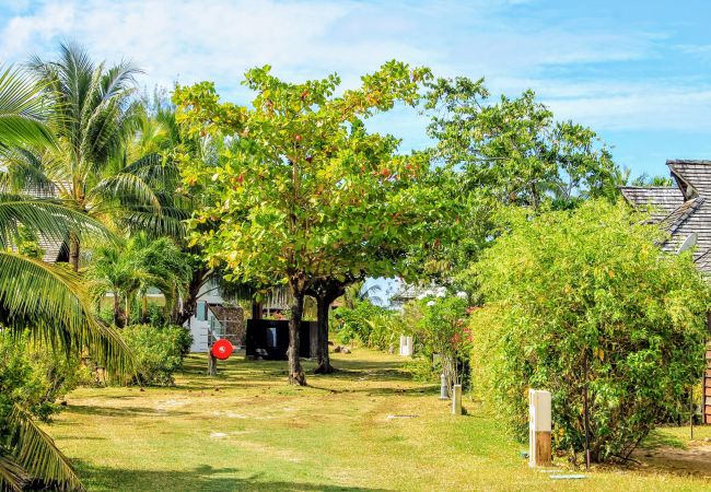 Ce joli hébergement aux ambiances locales est niché au sein d’un beau jardin tropical au cœur d’une propriété privée, avec un accès direct et privé à la célèbre plage des Tipaniers.