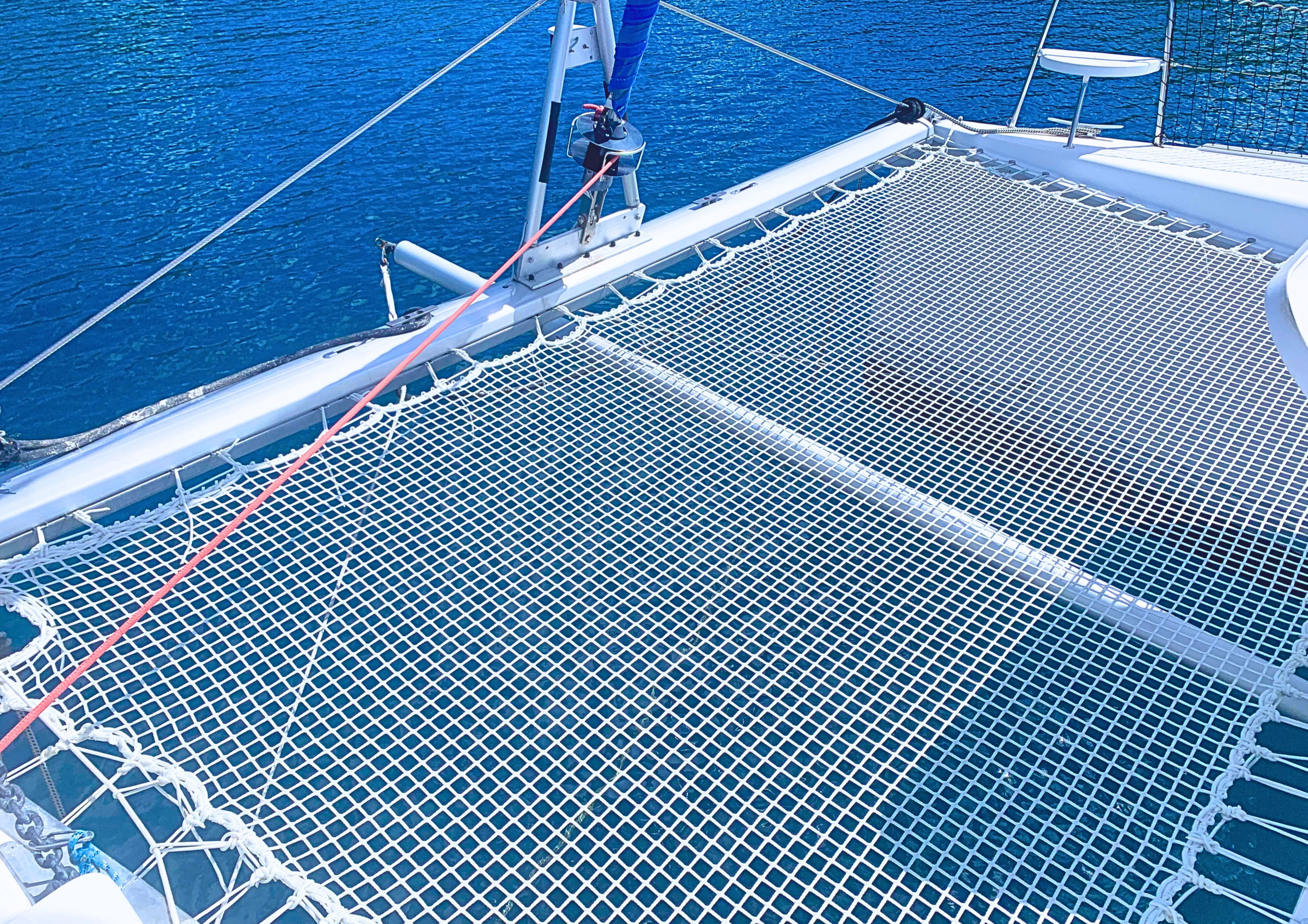L’extérieur est équipé d'un filet qui fait le tour du bateau et d'un trampoline qui vous permet de vous allonger pour vous détendre et bouquiner ou pour observer les étoiles au milieu de ce magnifique lagon. 1 paddle et du matériel de snorkeling seront à votre disposition pour partir en exploration et rencontrer les animaux marins, des matelas confortables seront disposés sur le pont avant pour apprécier au mieux vos bains de soleil.