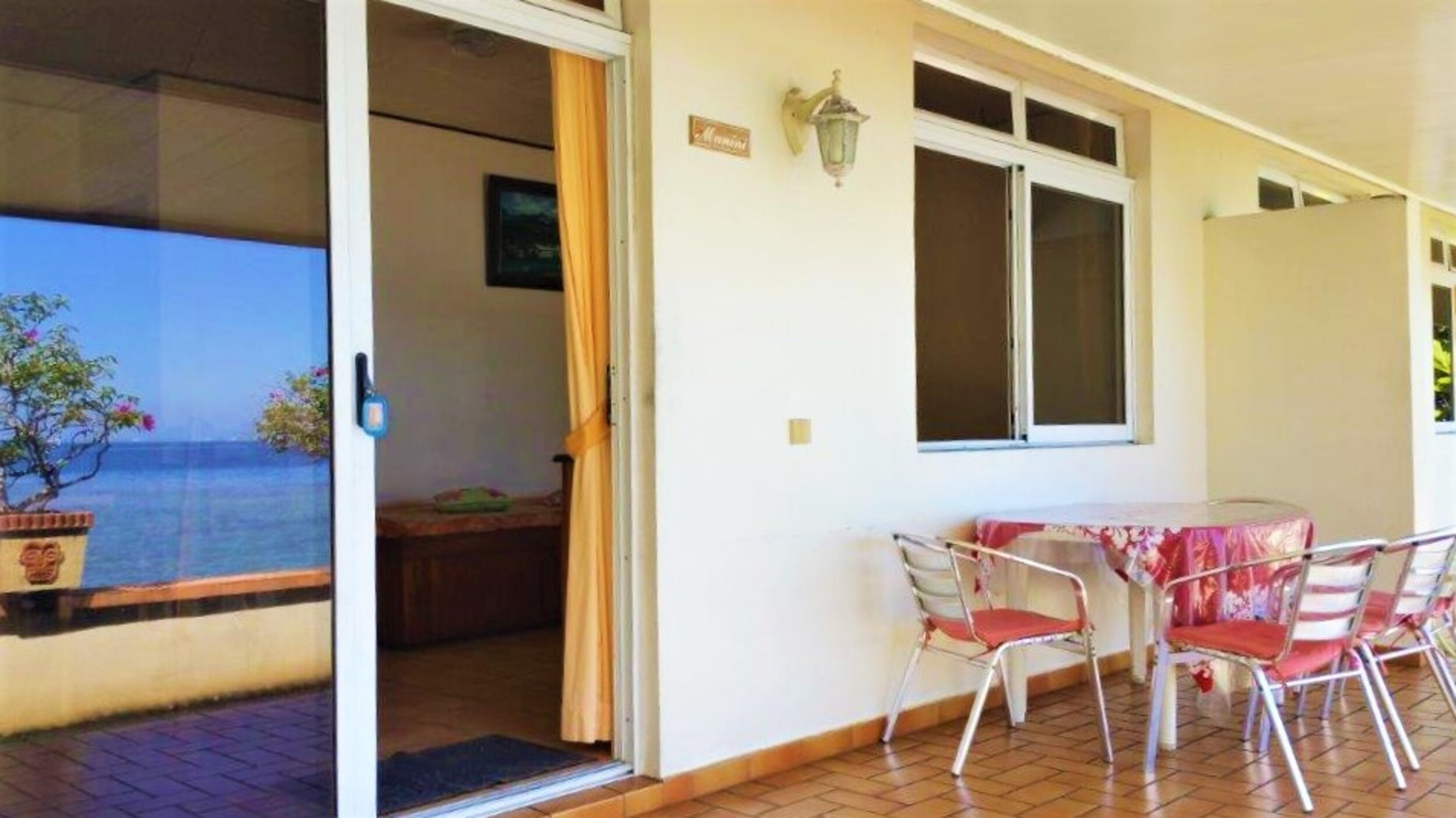 - une terrasse privative vous attend avec des tables et des chaises pour prendre vos repas en admirant la vue sur la mer.