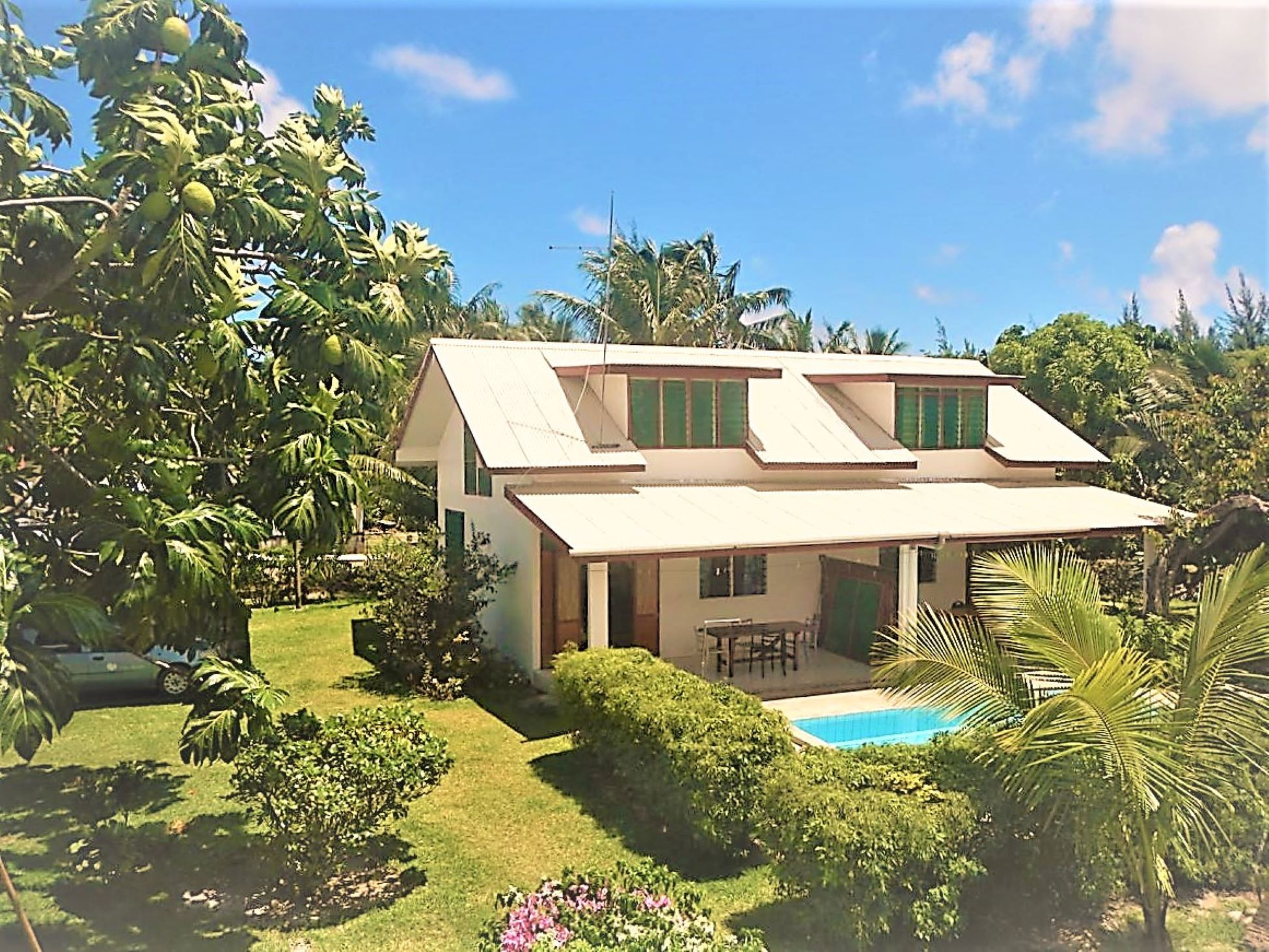 Ninamu Full House + voiture se situe sur la barrière de corail, non loin de l’aéroport et du village principal de Fare. A seulement 100 mètres de votre maison profitez du récif et ses kilomètres de plage sauvage.