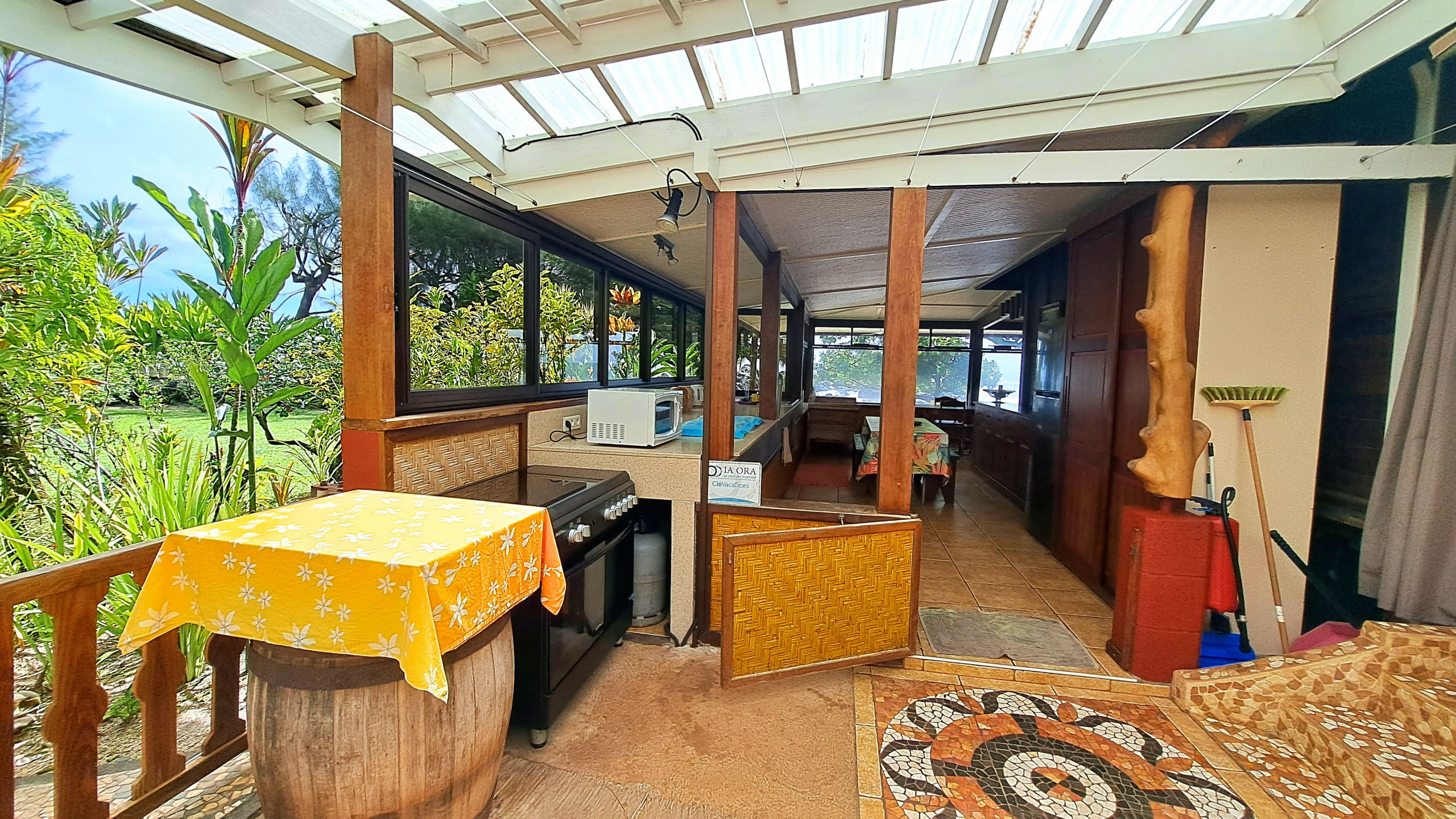 Les repas pourront être pris soit dans la cuisine, soit dans l'espace ouvert et abrité spécialement aménagé à l'entrée du fare.