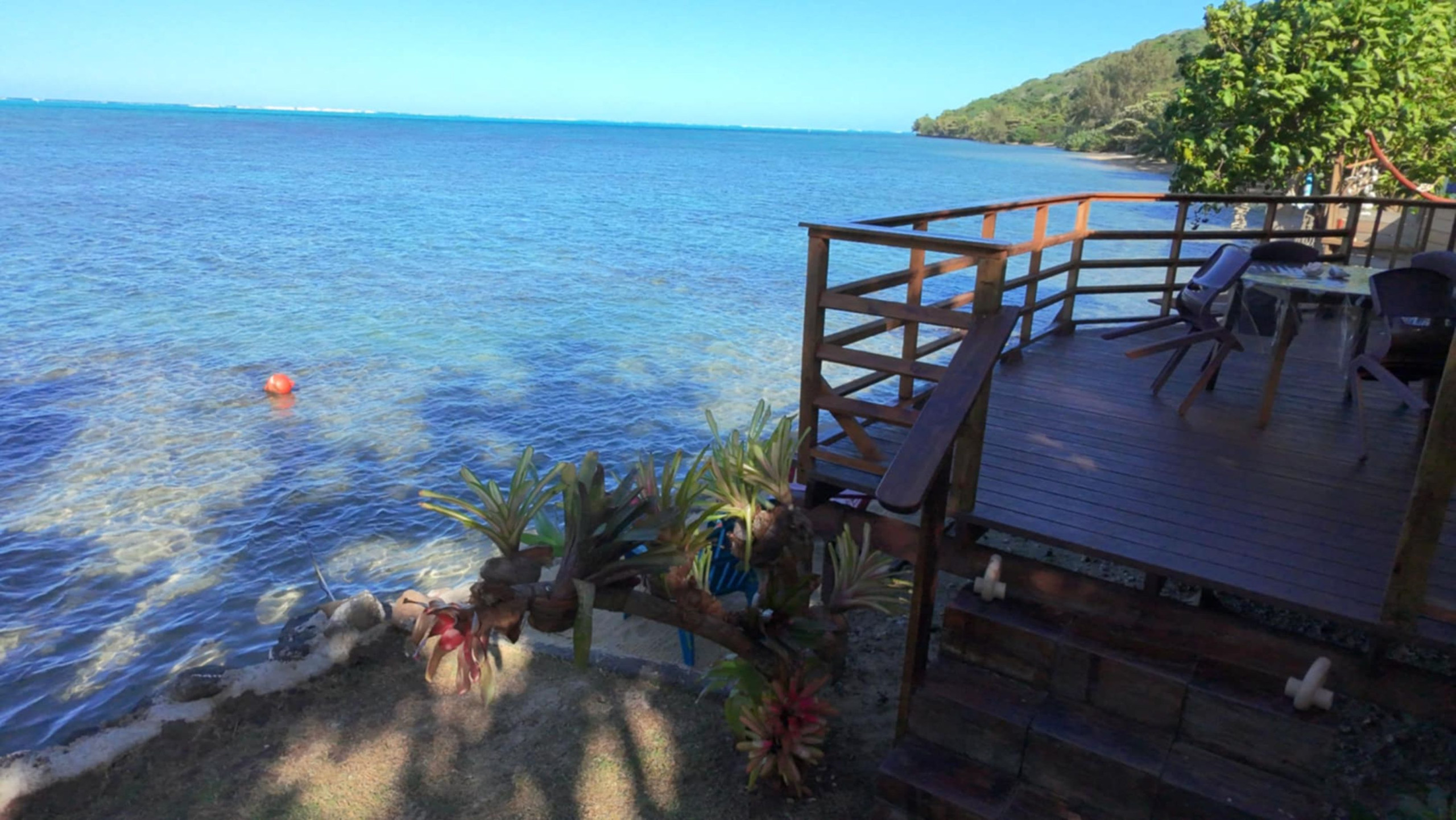 La terrasse surplombant le lagon vous invite à savourer vos repas face à une vue imprenable, dans un cadre apaisant où le bleu de la mer se mêle au vert de la végétation.