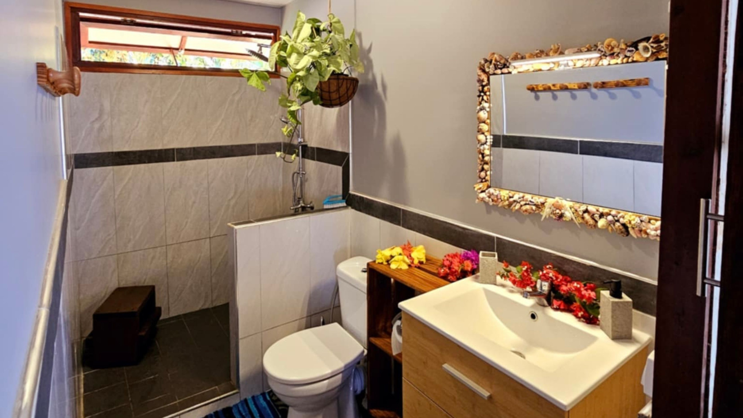 Le charme polynésien, appelé Fare en Polynésie, ce logement à l’architecture ouverte sur l’extérieur s’harmonise parfaitement avec la nature environnante. Des touches décoratives de coquillages rappellent la richesse du lagon et ses merveilles que vous pourrez admirer juste au pied de la maison.