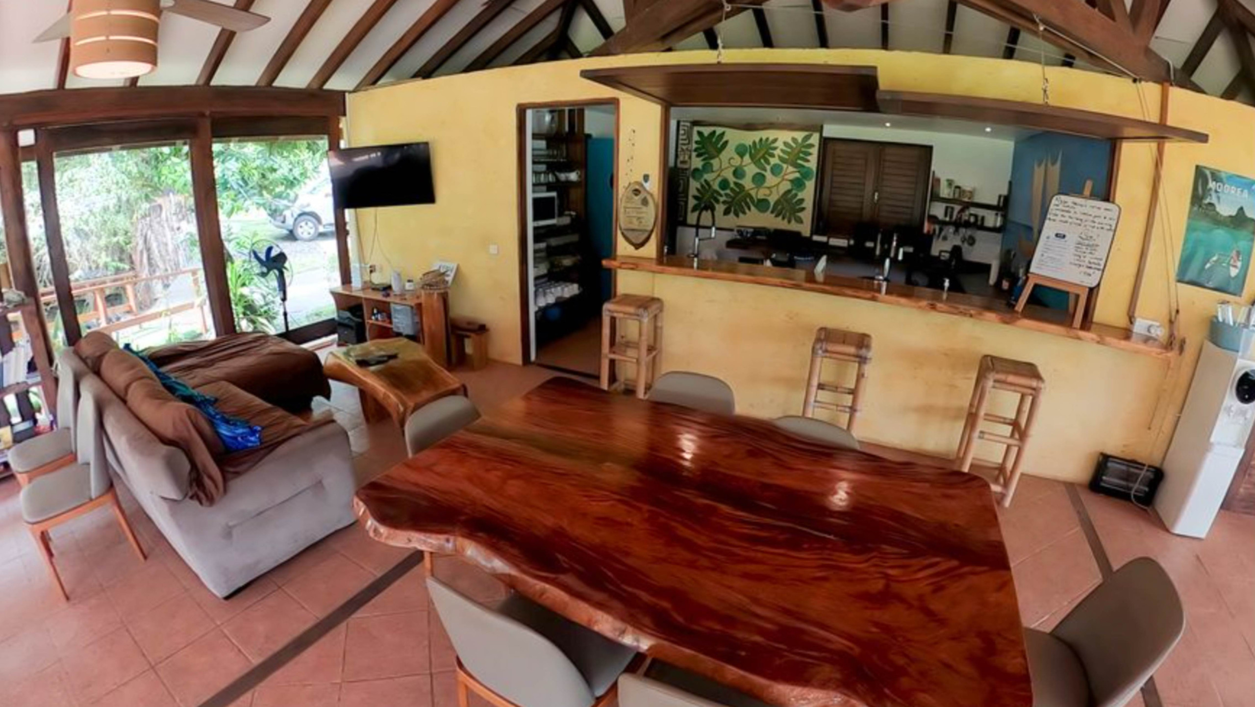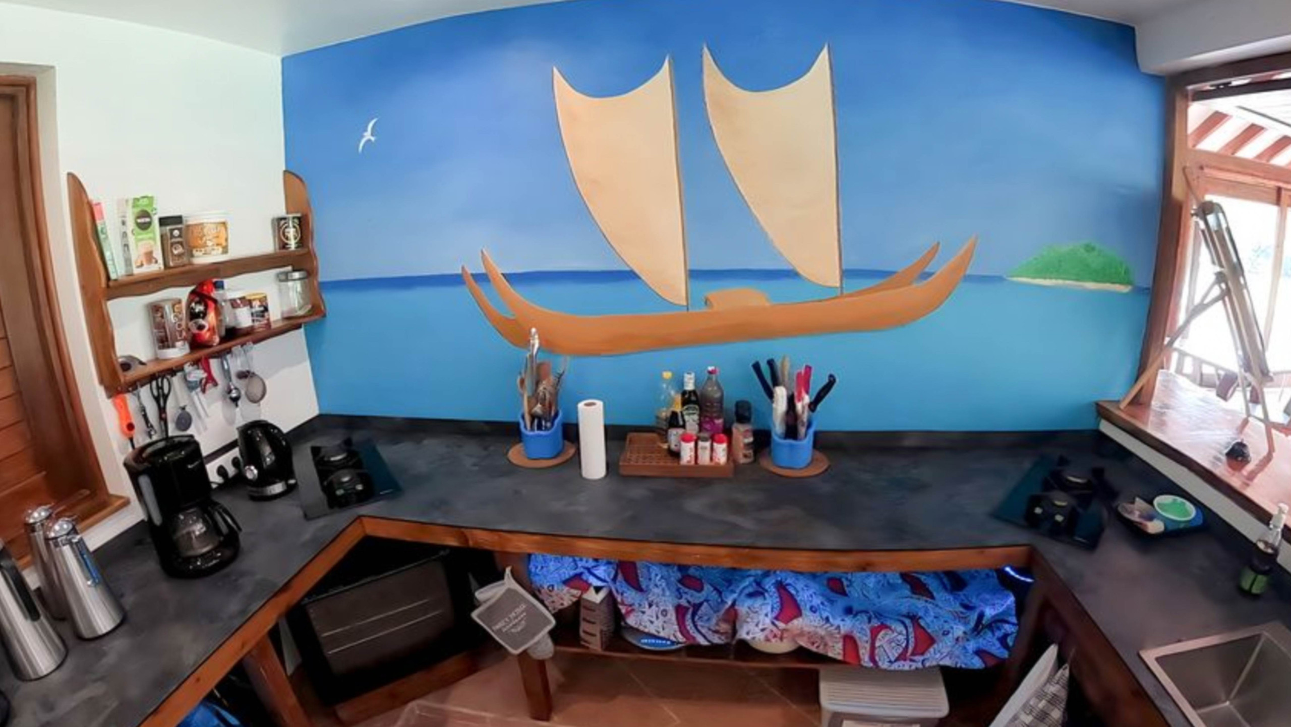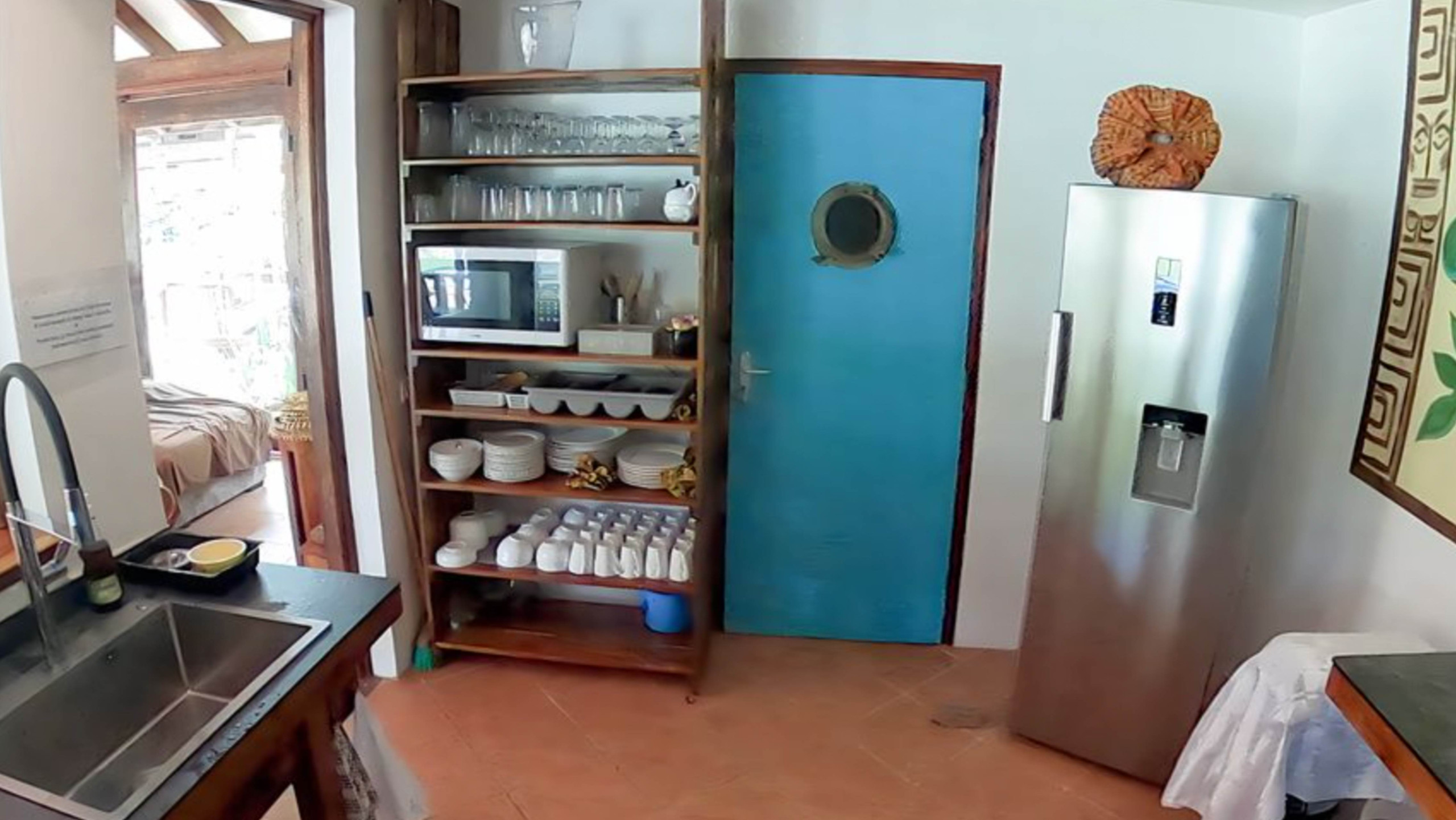 Vous profiterez d’un accès direct à la plage privée, avec kayaks mis à disposition pour explorer le lagon turquoise. Pour vos repas, une grande cuisine commune équipée, ouverte sur le jardin et son espace salle à manger, est accessible à tous les voyageurs.