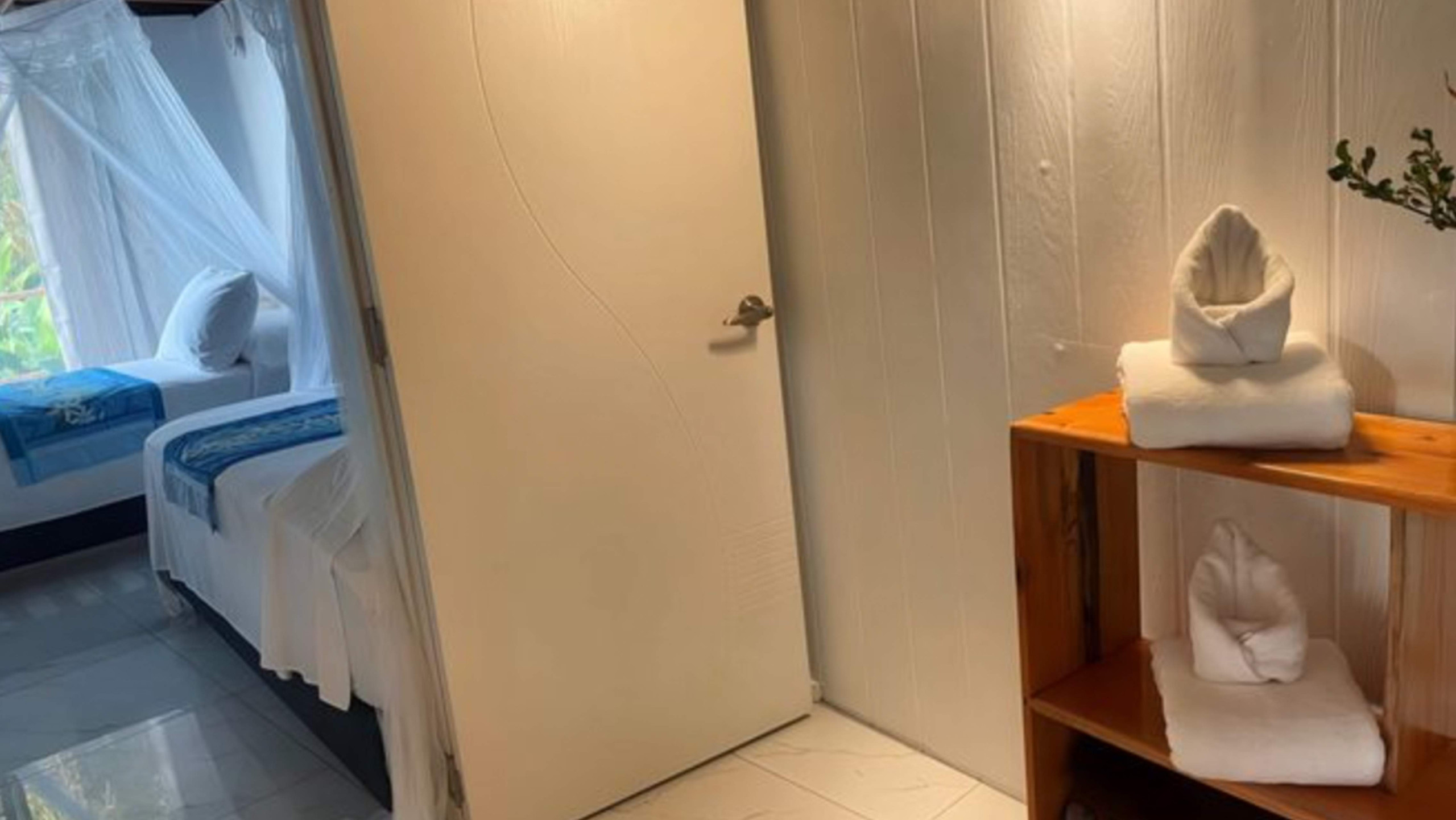À l’extérieur, profitez d’une terrasse privée, parfaite pour savourer la sérénité des lieux. Vous bénéficierez également d’un accès direct à la plage privée, avec kayaks mis à disposition pour explorer le lagon turquoise.