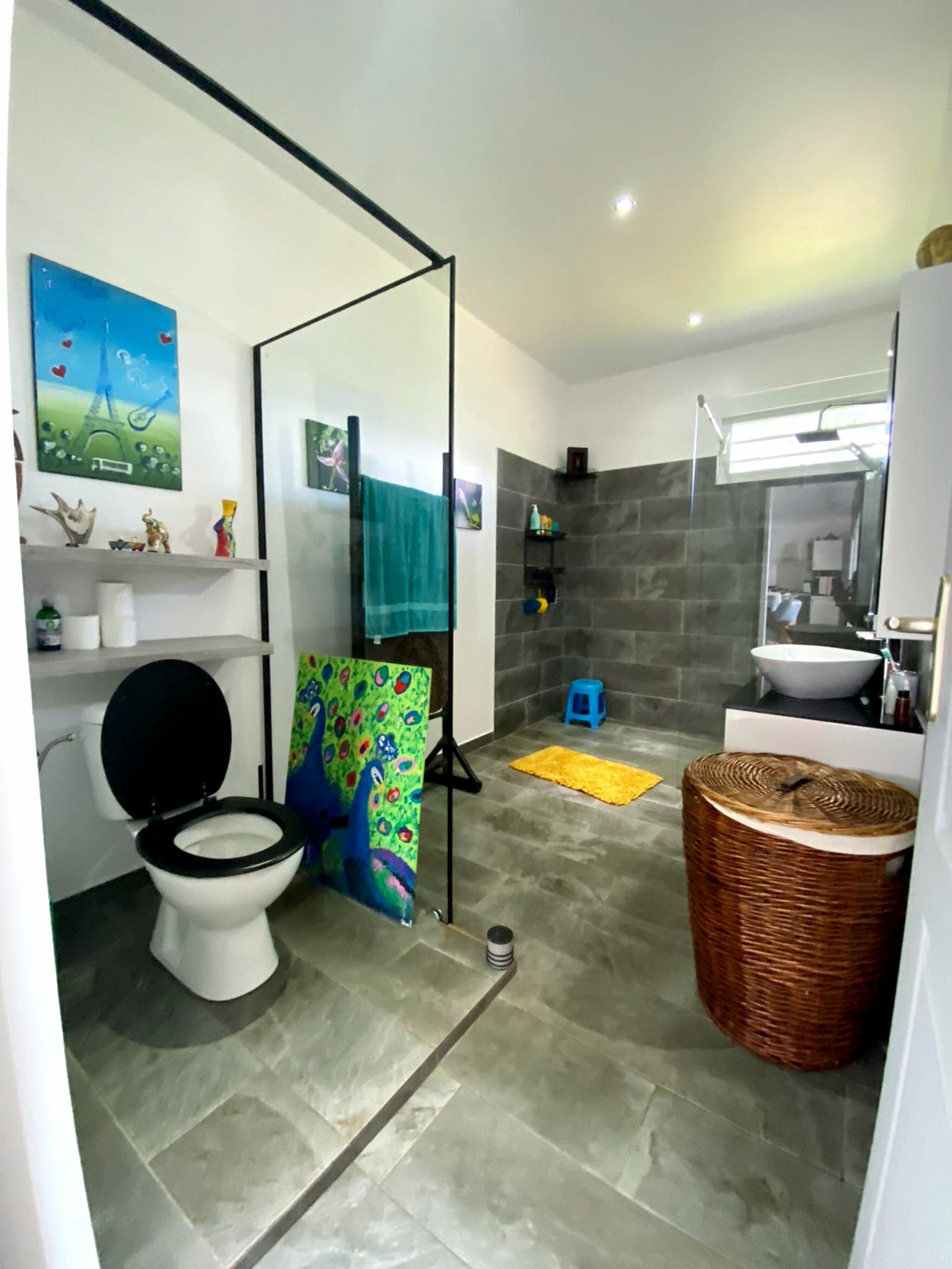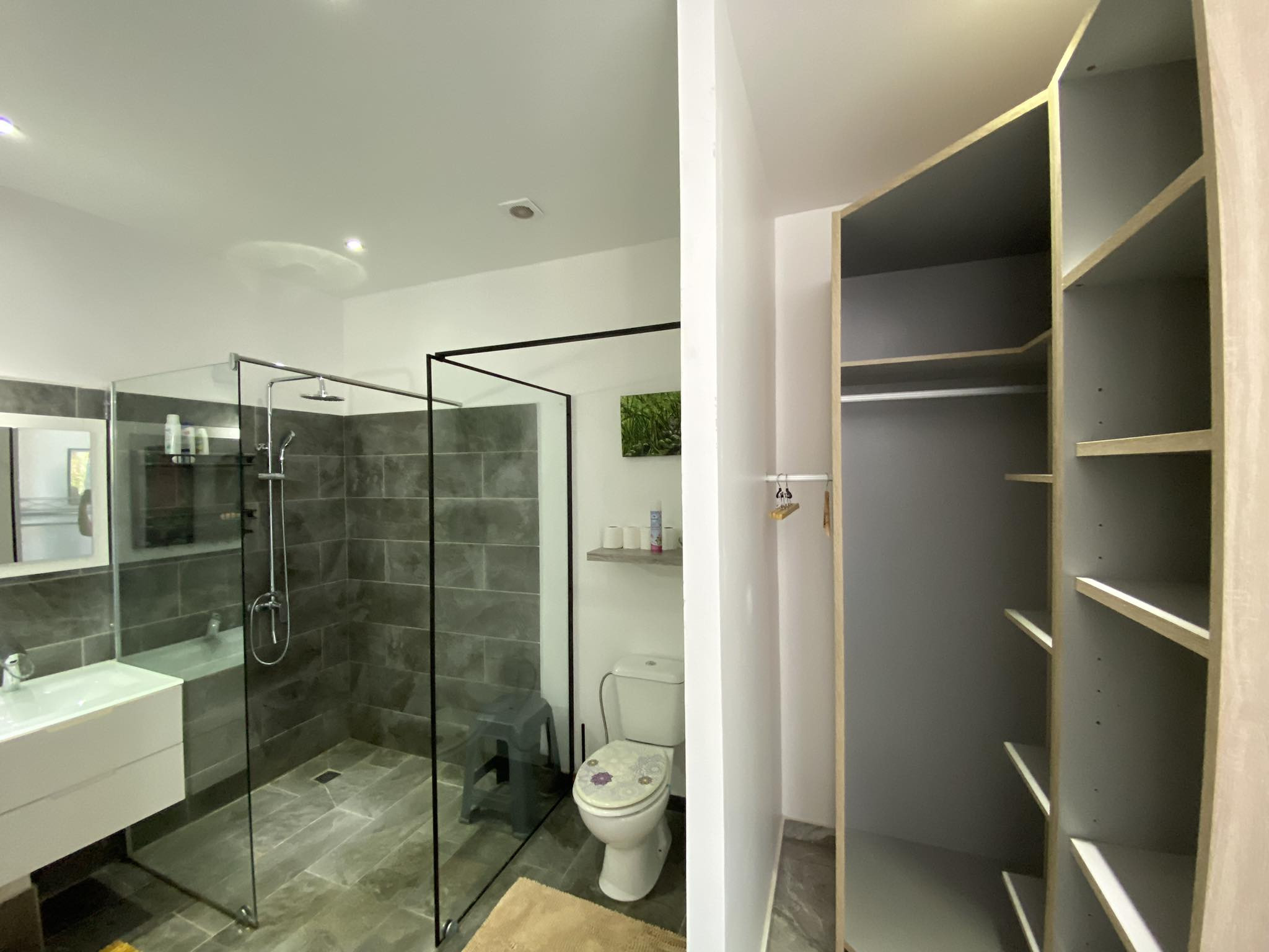 - une vaste salle d'eau avec douche à l'italienne, lavabo et wc