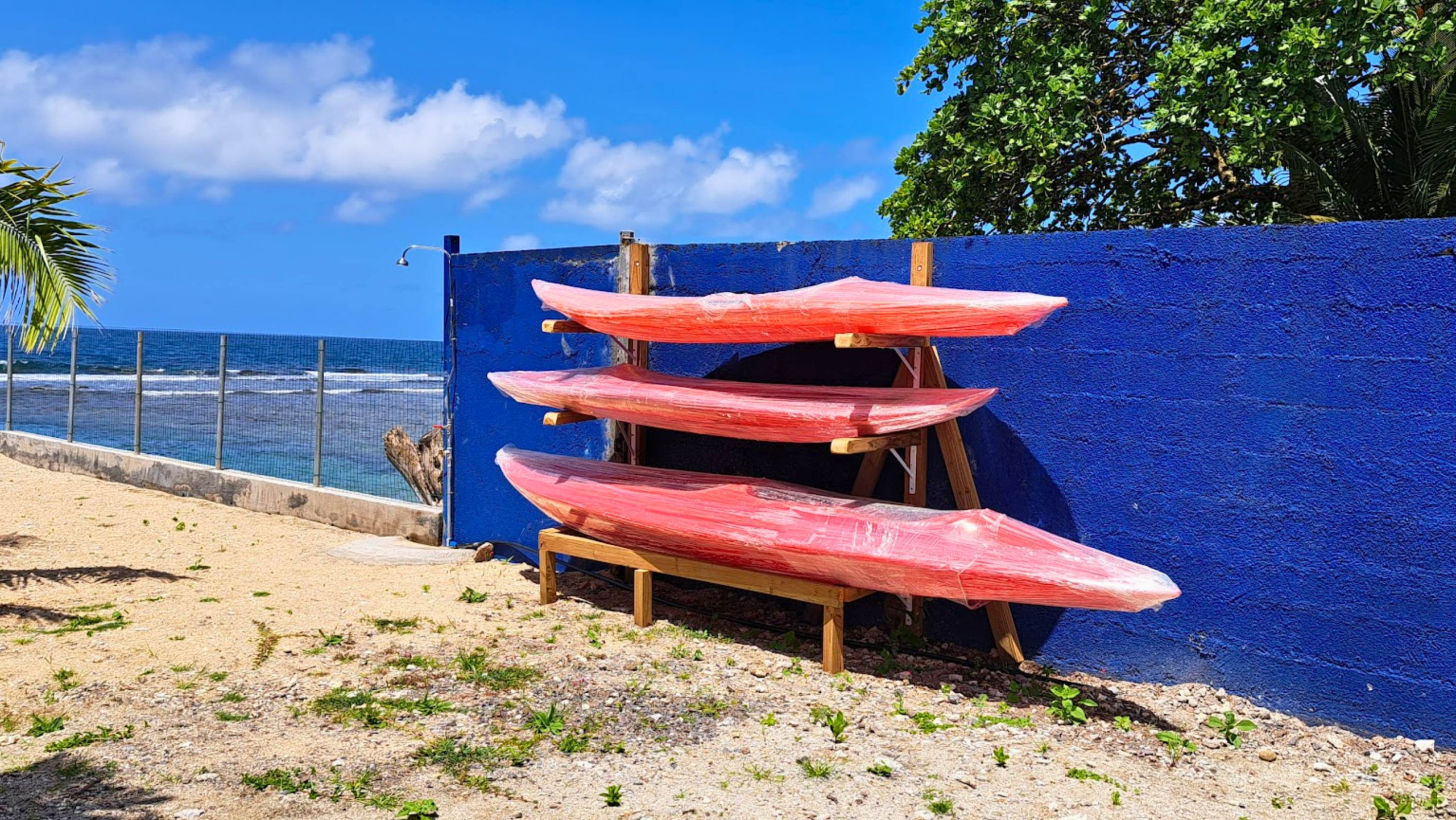 Un kayak double et un kayak simple sont fournis avec les gilets de sauvetage et vous permettront de vous mettre à l'eau via le slipway pour partir à la découverte du lagon.