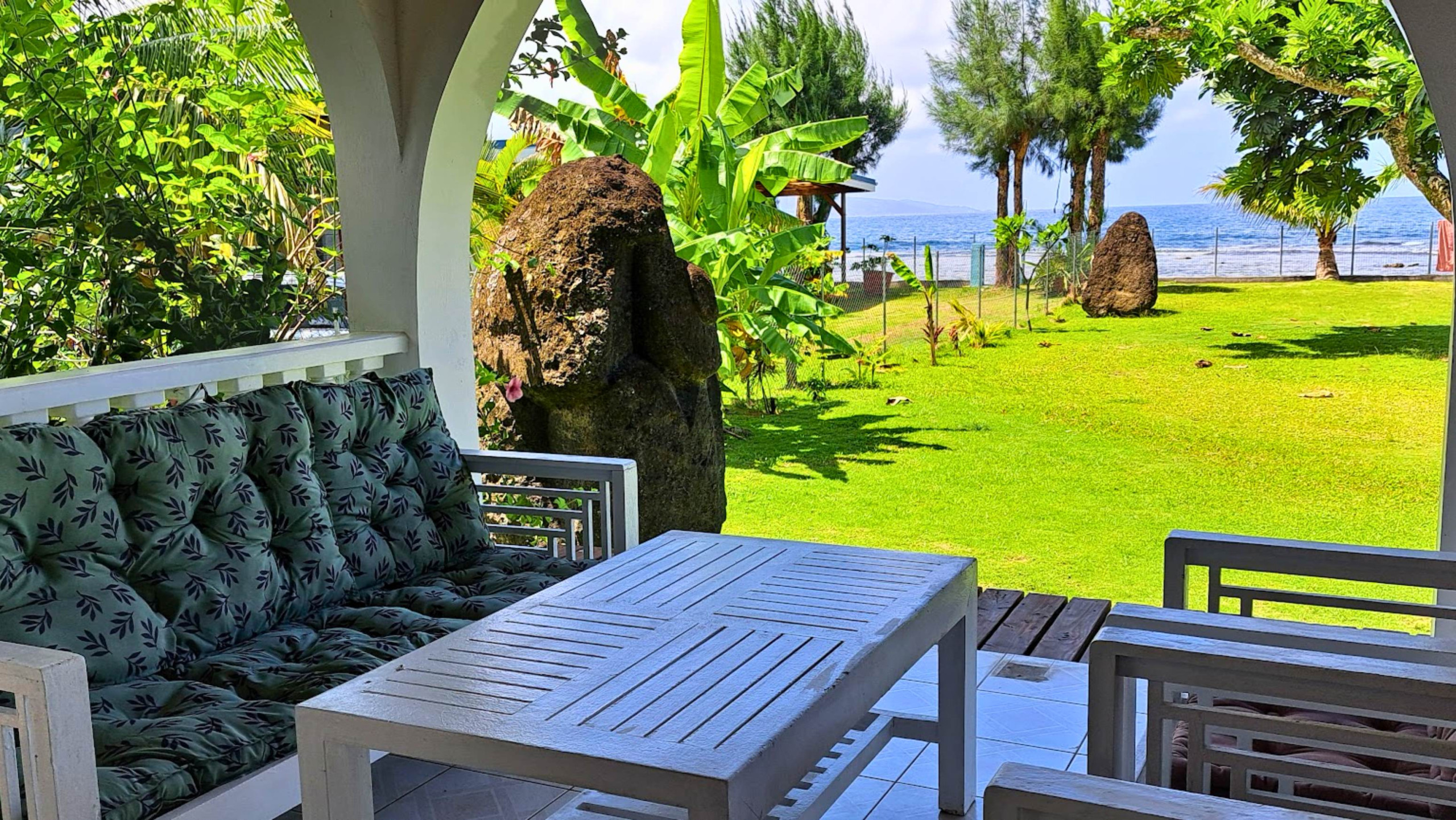 Vous passerez une bonne partie de votre temps dans cet espace bord de mer, spécialement aménagé pour votre plus grand plaisir avec vue directe sur le Motu.