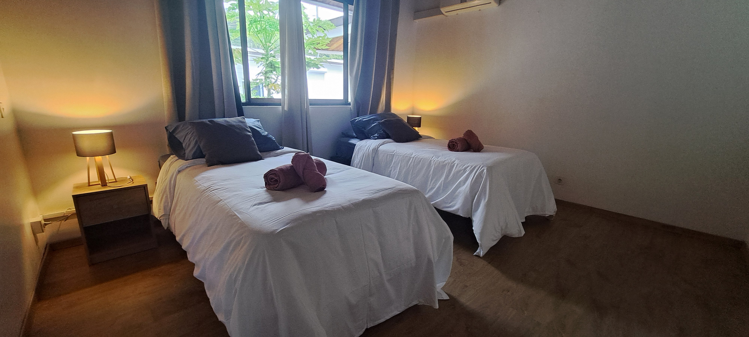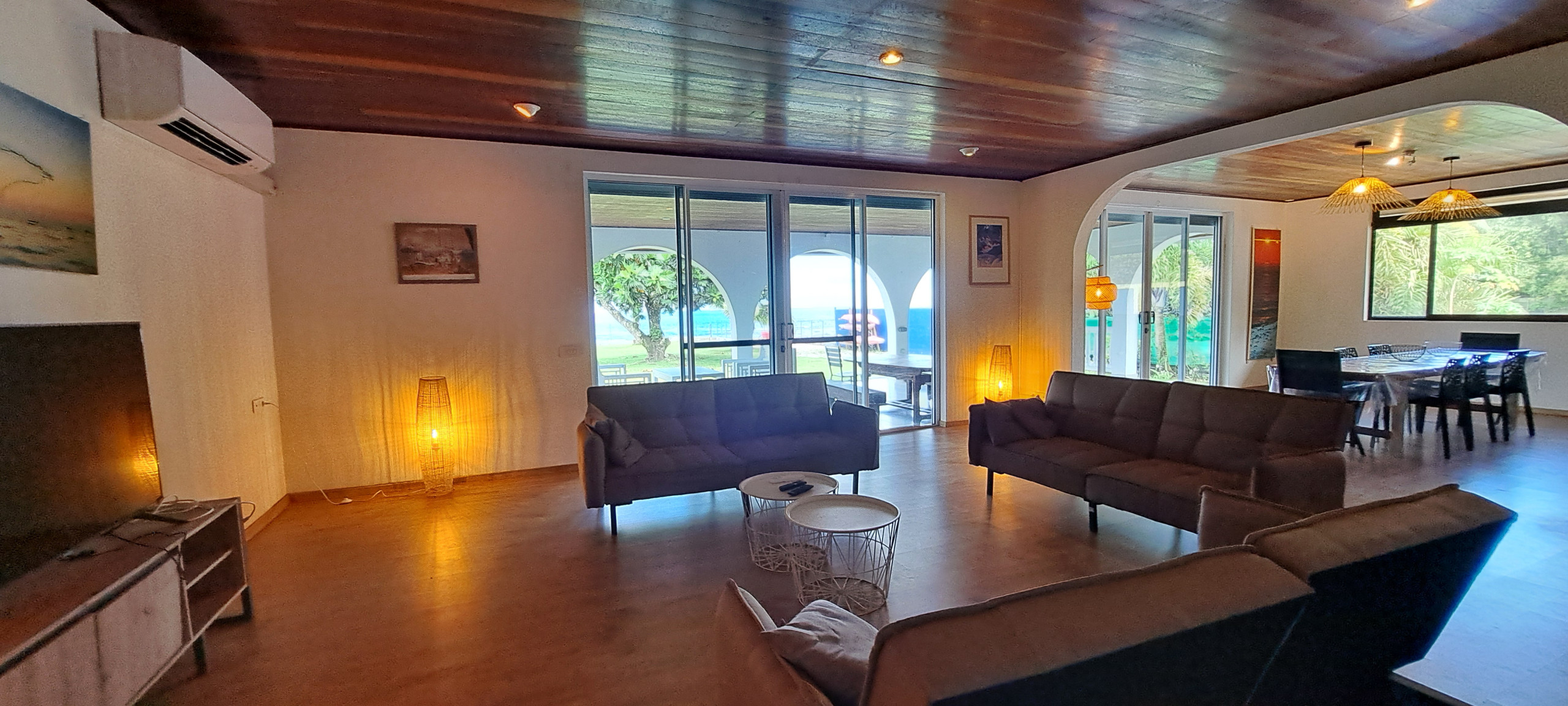 La capacité maximum de couchage peut aller jusqu'à 10 personnes : 6 couchages au sein de la maison (+ 2 enfants dans le canapé lit) + 2 couchages avec supplément au niveau du Fare Potee). Nous contacter pour plus de renseignements.