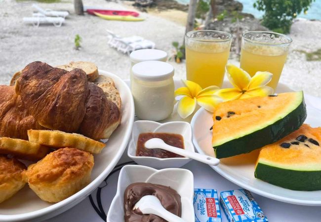 Petit-déjeuner sur commande (1500–2000 XPF/pers., à régler sur place en espèces)