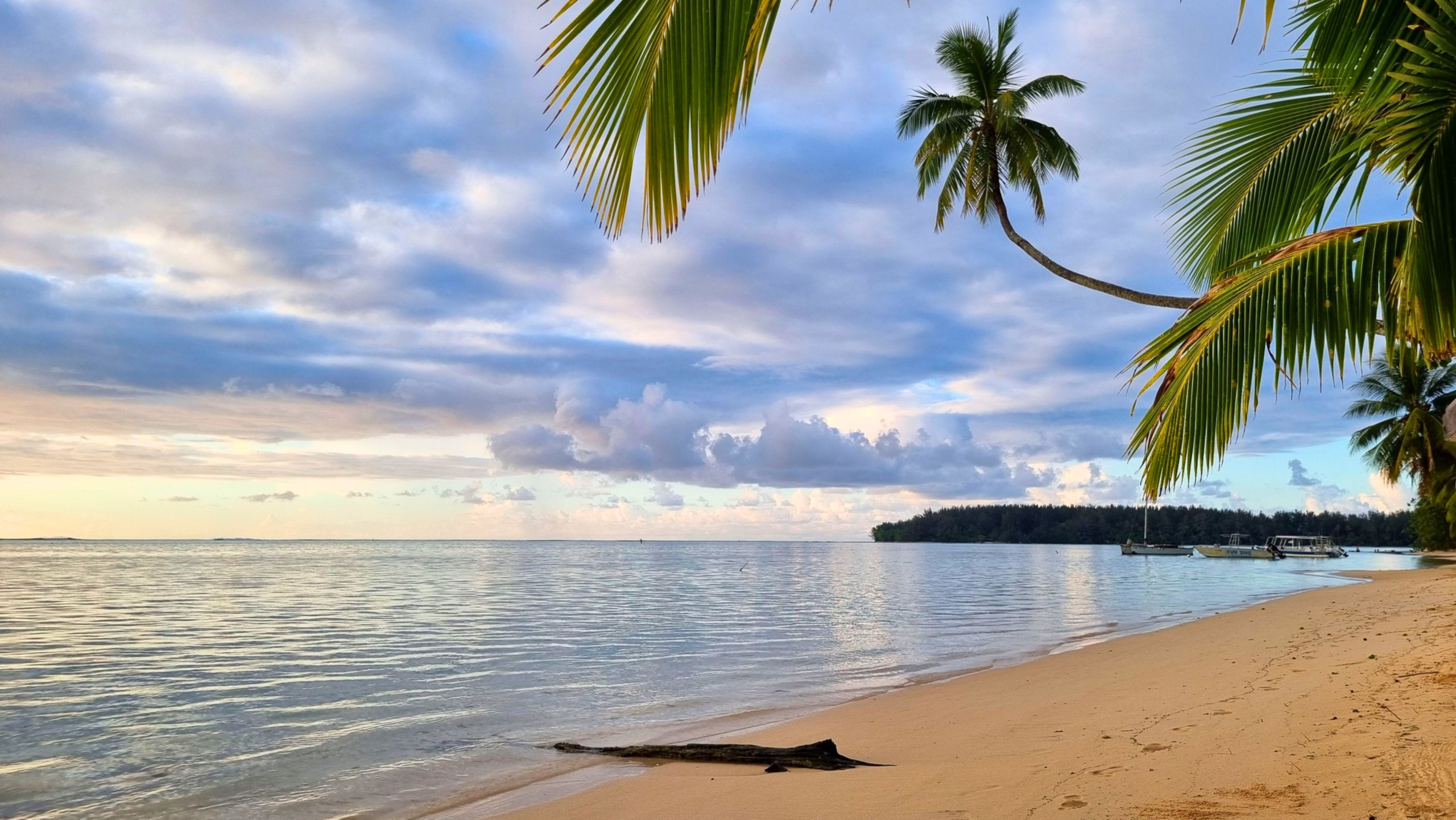 Moorea côté mer, plage de sable blanc, lagon bleu turquoise, vue à couper le souffle