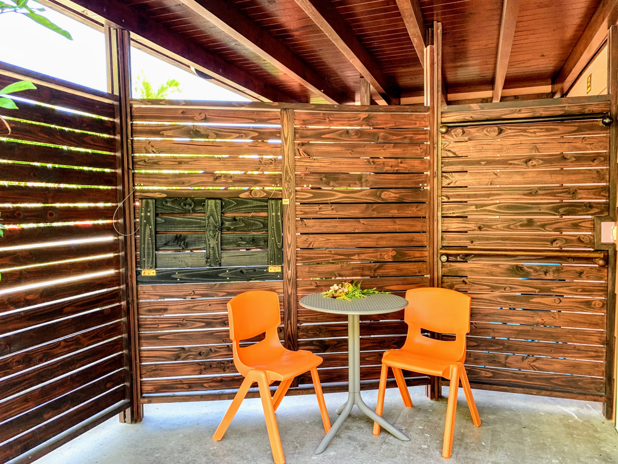 Celui-ci est une chambre supérieure de 21m² avec son sol en parquet, climatisée et tout confort. Elle est équipée d’un lit Queen size, d’une télévision avec coin bureau, bouilloire et petit frigidaire sont à disposition, ainsi qu’une salle de douche privative avec lavabo et toilette. Vous apprécierez votre terrasse privée avec table et chaises pour prendre votre café le matin.