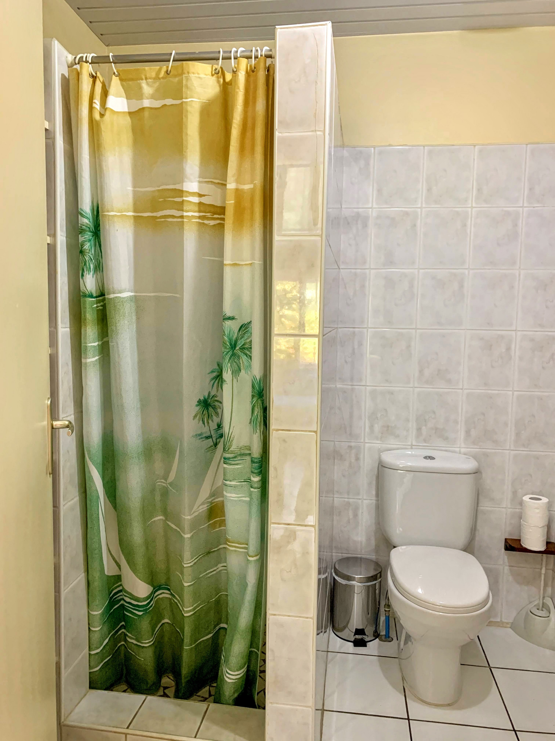 This is a F3 apartment located on the 1st floor of the main building. It is made up of 2 air-conditioned and comfortable rooms. The master bedroom has a Queen size bed, the 2nd bedroom has 2 single beds, and the living room has 2 armchairs + TV and a single bed for the 5th occupant. The kitchen equipped with kettle, hob, utensils and fridge + freezer are available, as well as a private shower room with sink and toilet. You will appreciate your private terrace with table and chairs for your morning coffee.