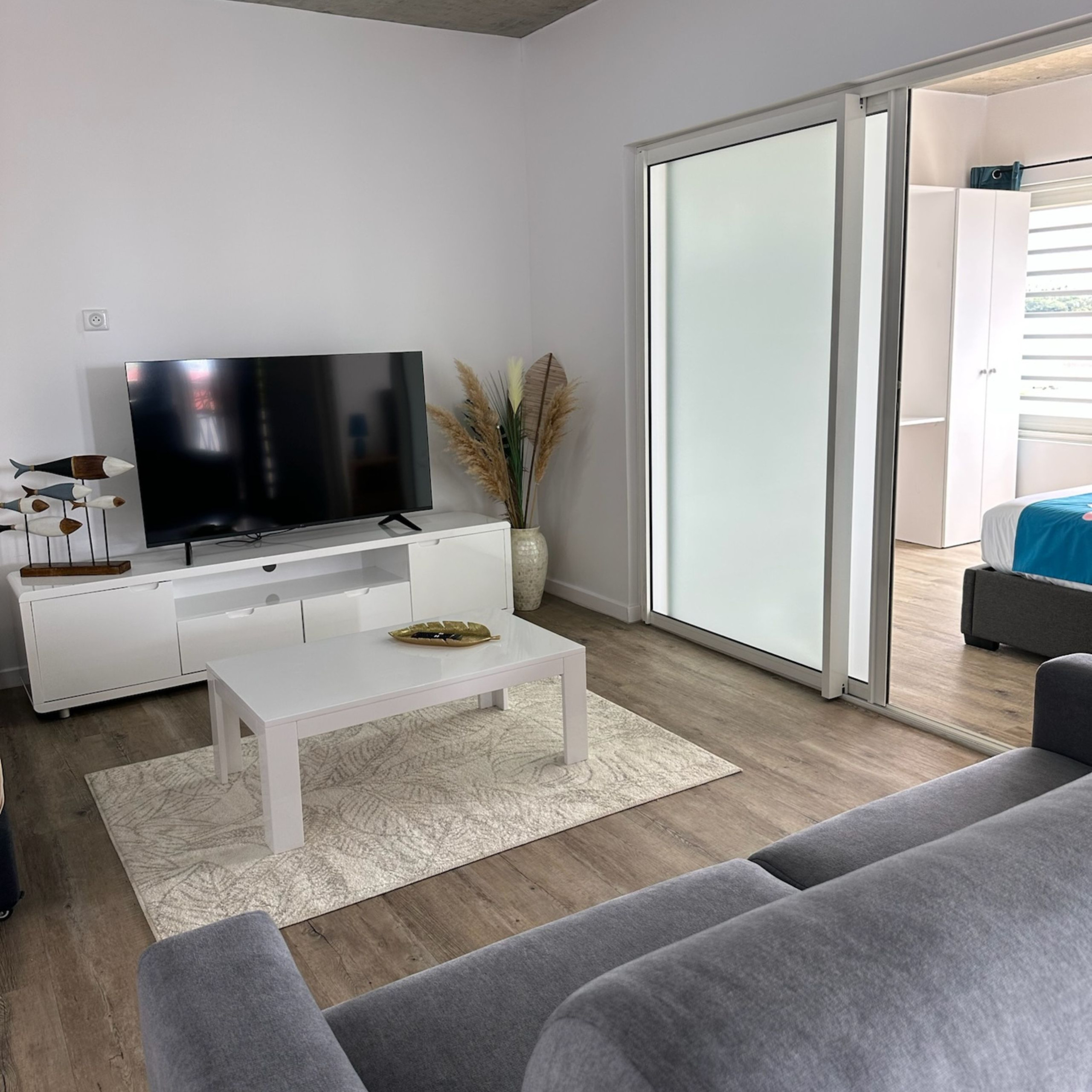 The area where you'll spend most of your free time is the terrace, with its bar and breathtaking view over the lagoon. It is equipped with a table and chairs for enjoying your morning meals and breakfasts in this calm and relaxing environment.