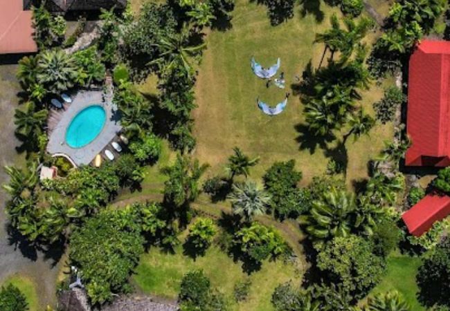 Nestled in the heart of a 9,000 m² park, fully fenced and surrounded by tropical vegetation, this calm and soothing place is a true haven of peace, far from the hustle and bustle of the city. You can relax there in complete serenity while enjoying an enchanting setting at a reasonable price.