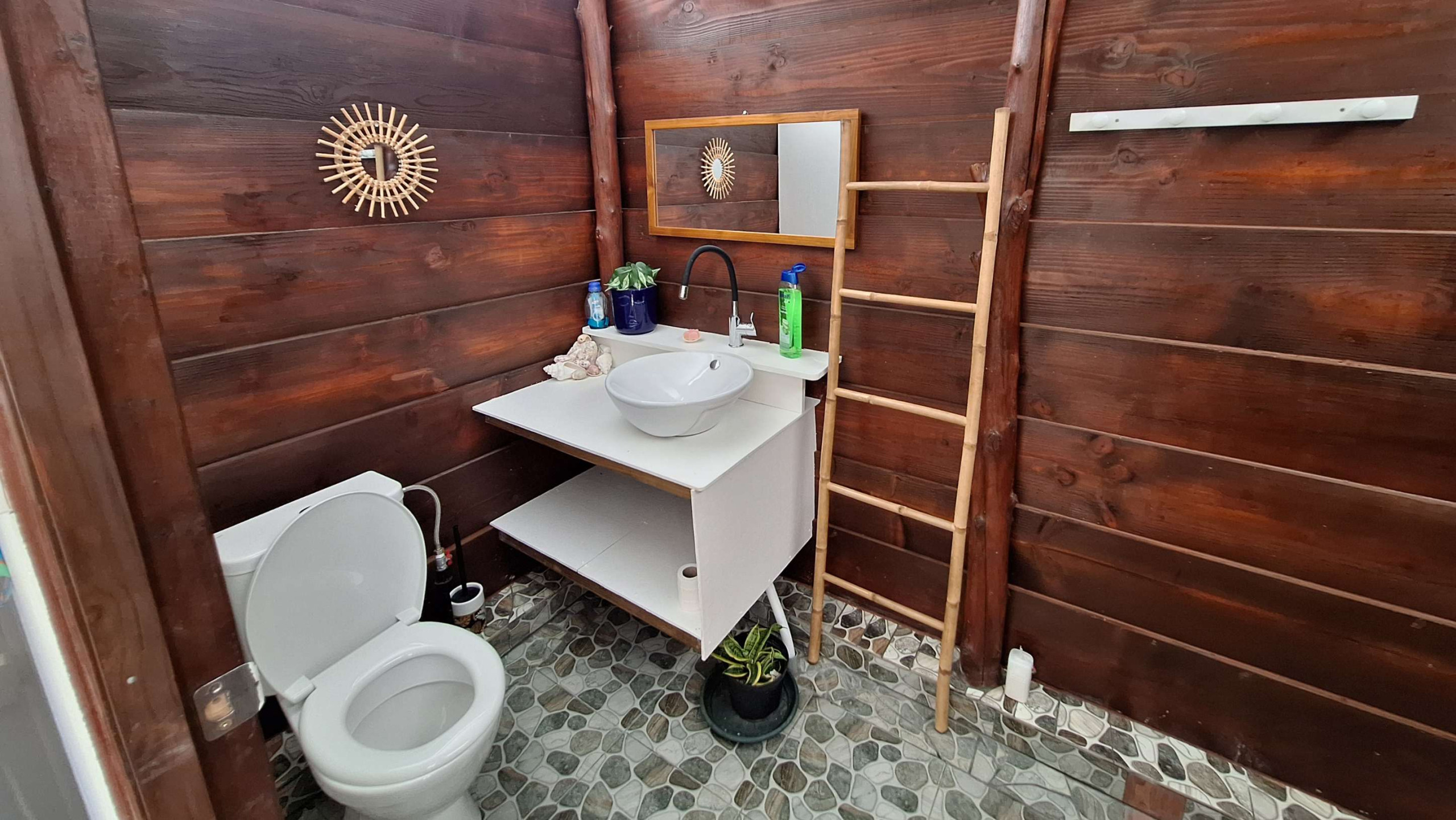 Ideal for 5 people, it is located on a shared plot with two other bungalows and the owner's house. You will undoubtedly have the opportunity to come across our four-legged companions (5 adorable dachshunds and some pigs) as well as discover the large vegetable garden on the property.