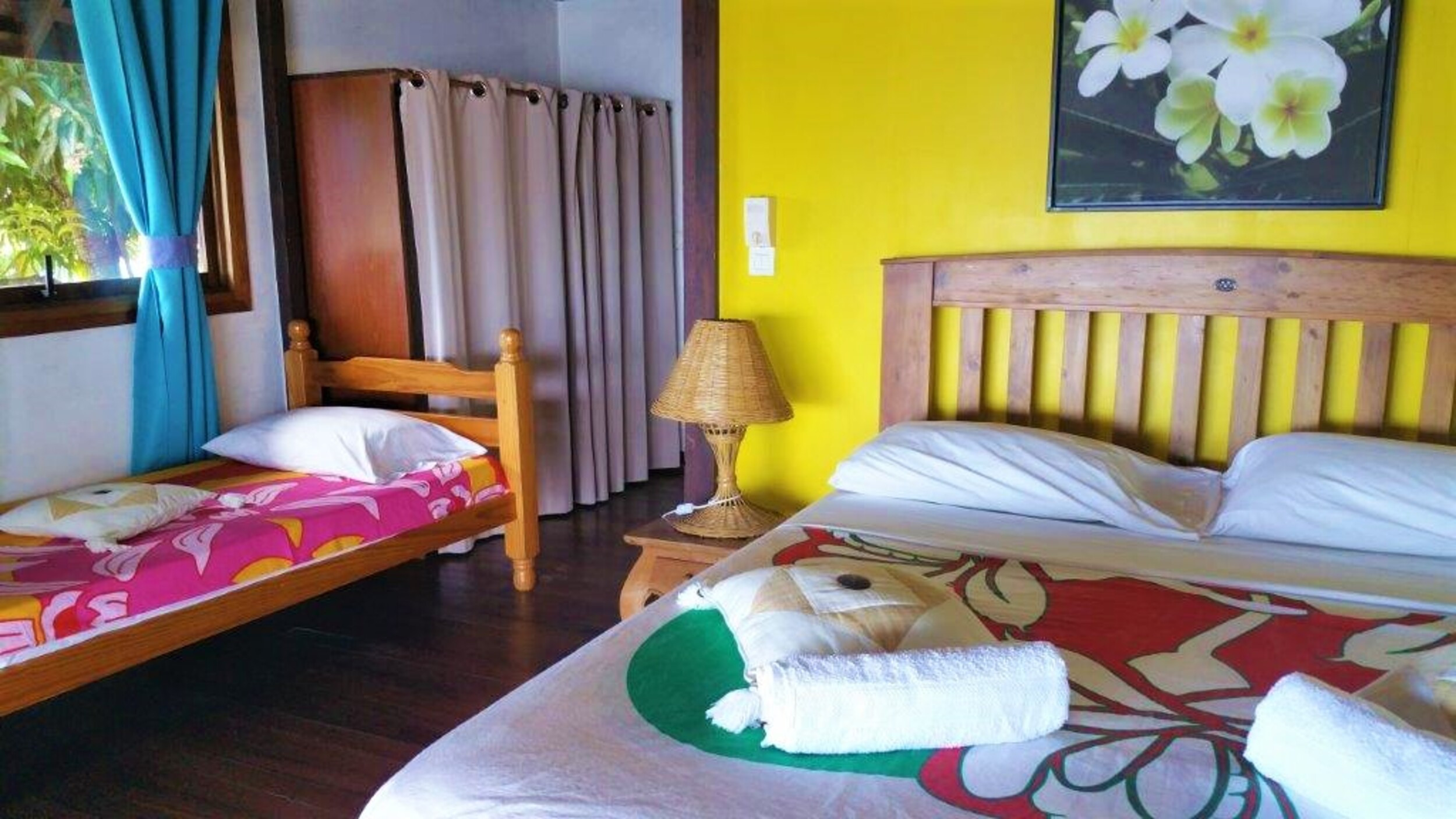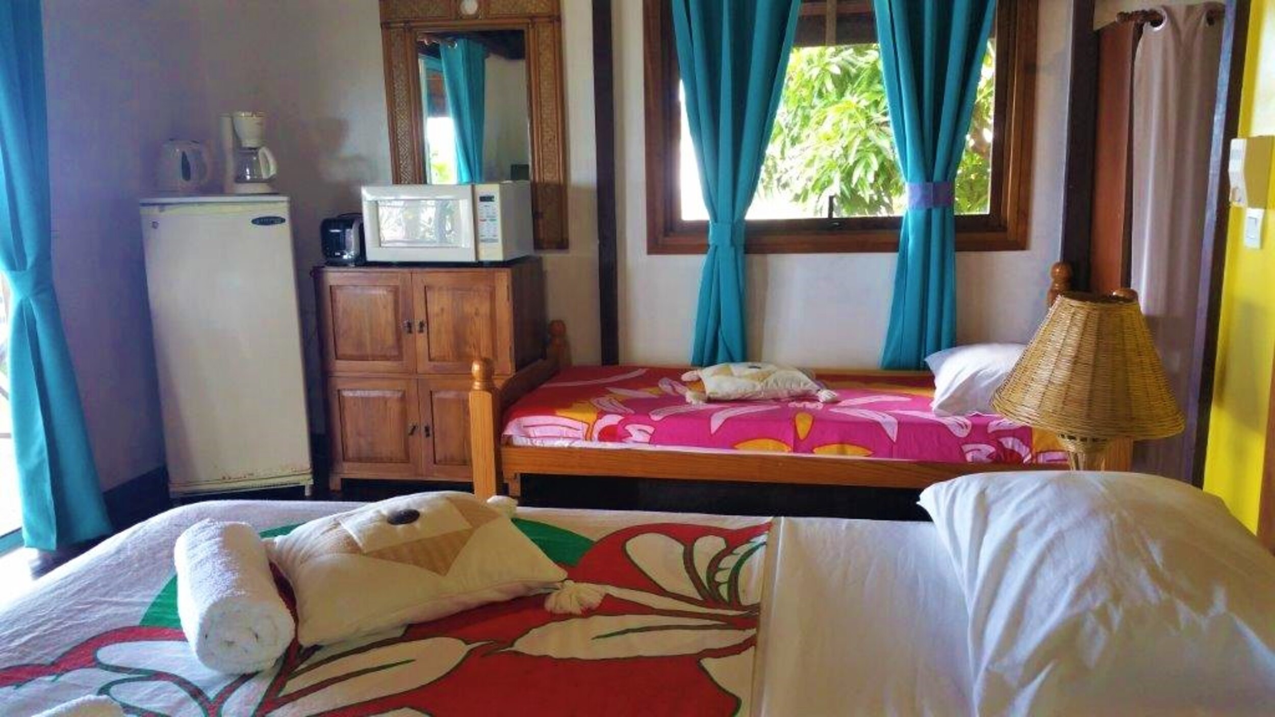 The Tiamao Auti bungalow is a traditional 40m2 wooden accommodation for up to 3 people, with a terrace overlooking the lush garden.