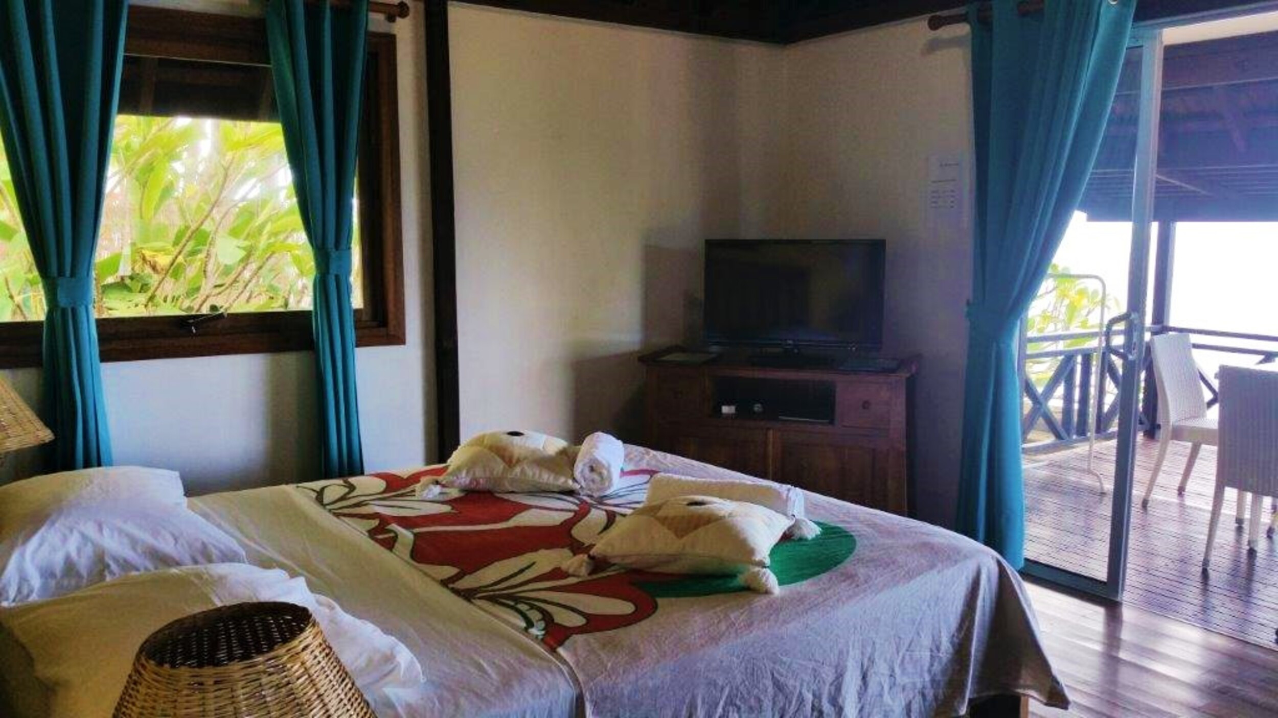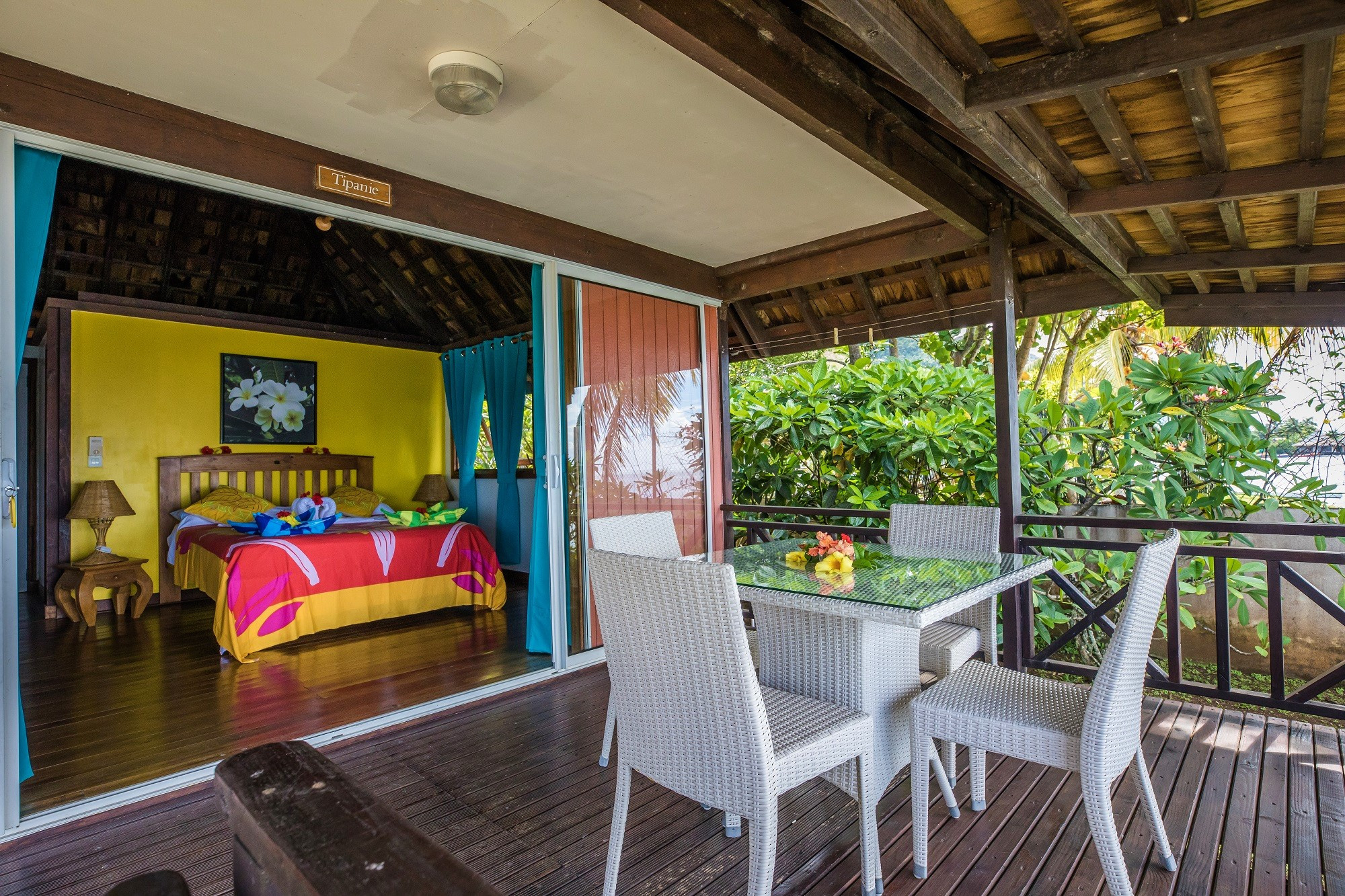 The Tiamao Tipanier Sea View bungalow is a traditional 40m2 wooden accommodation for up to 3 people, with a terrace overlooking the lagoon.