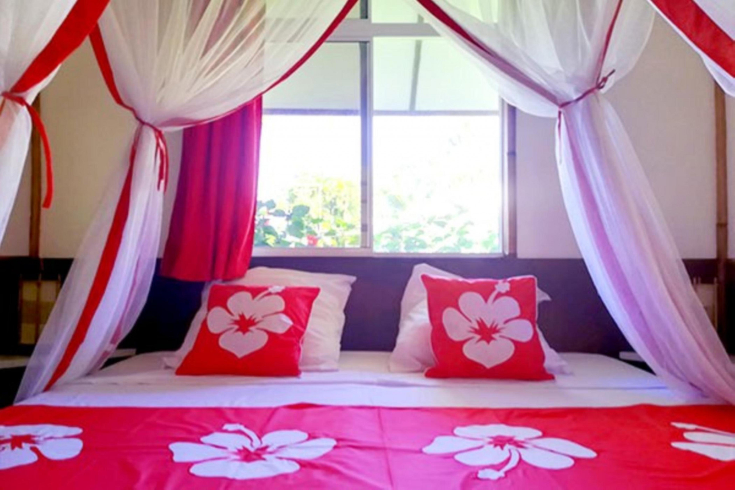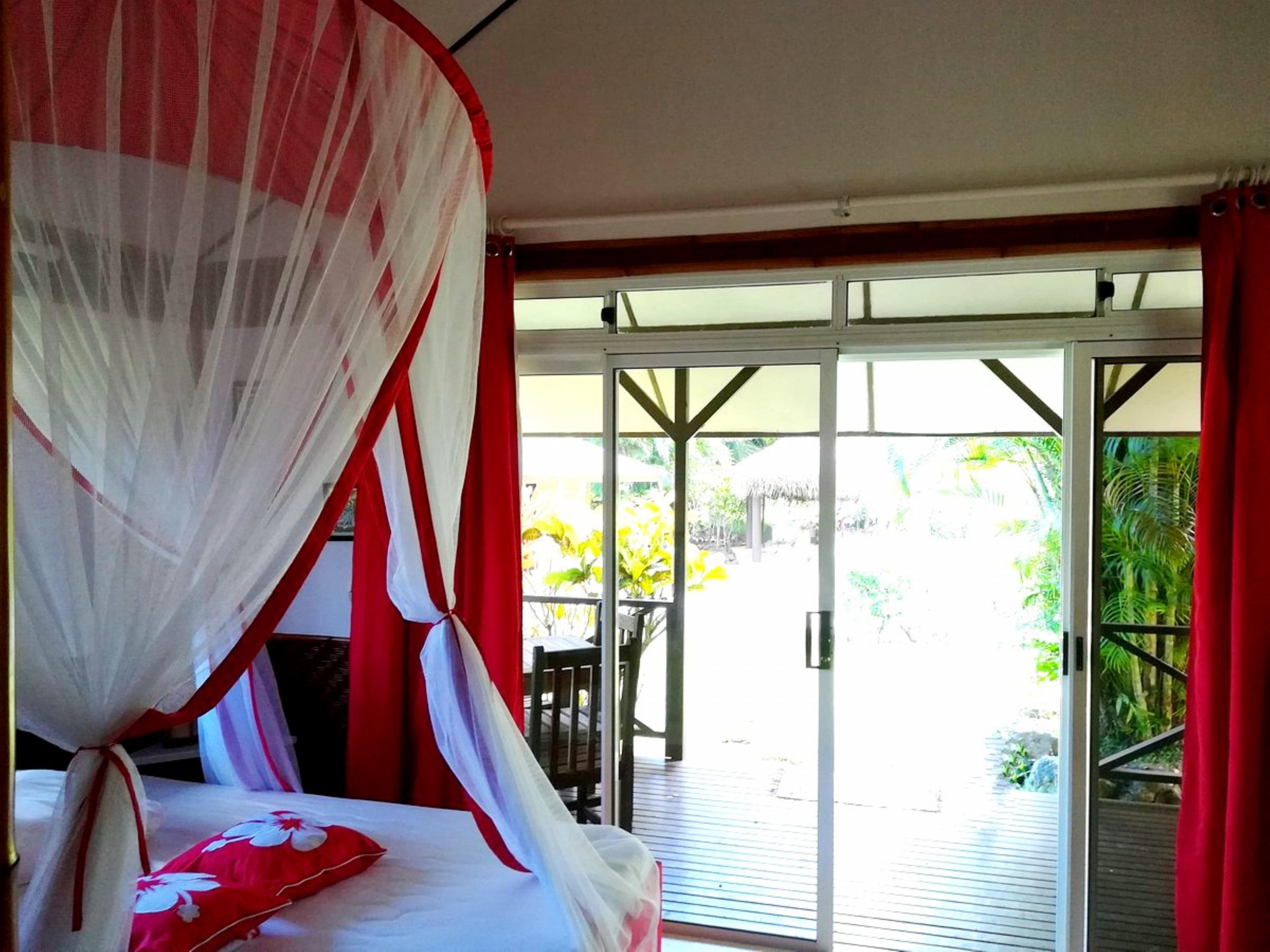 On the property, 3 typically Polynesian bungalows are installed in the heart of an exotic garden. You are located only a few meters from the lagoon with a view on the island of Raiatea.