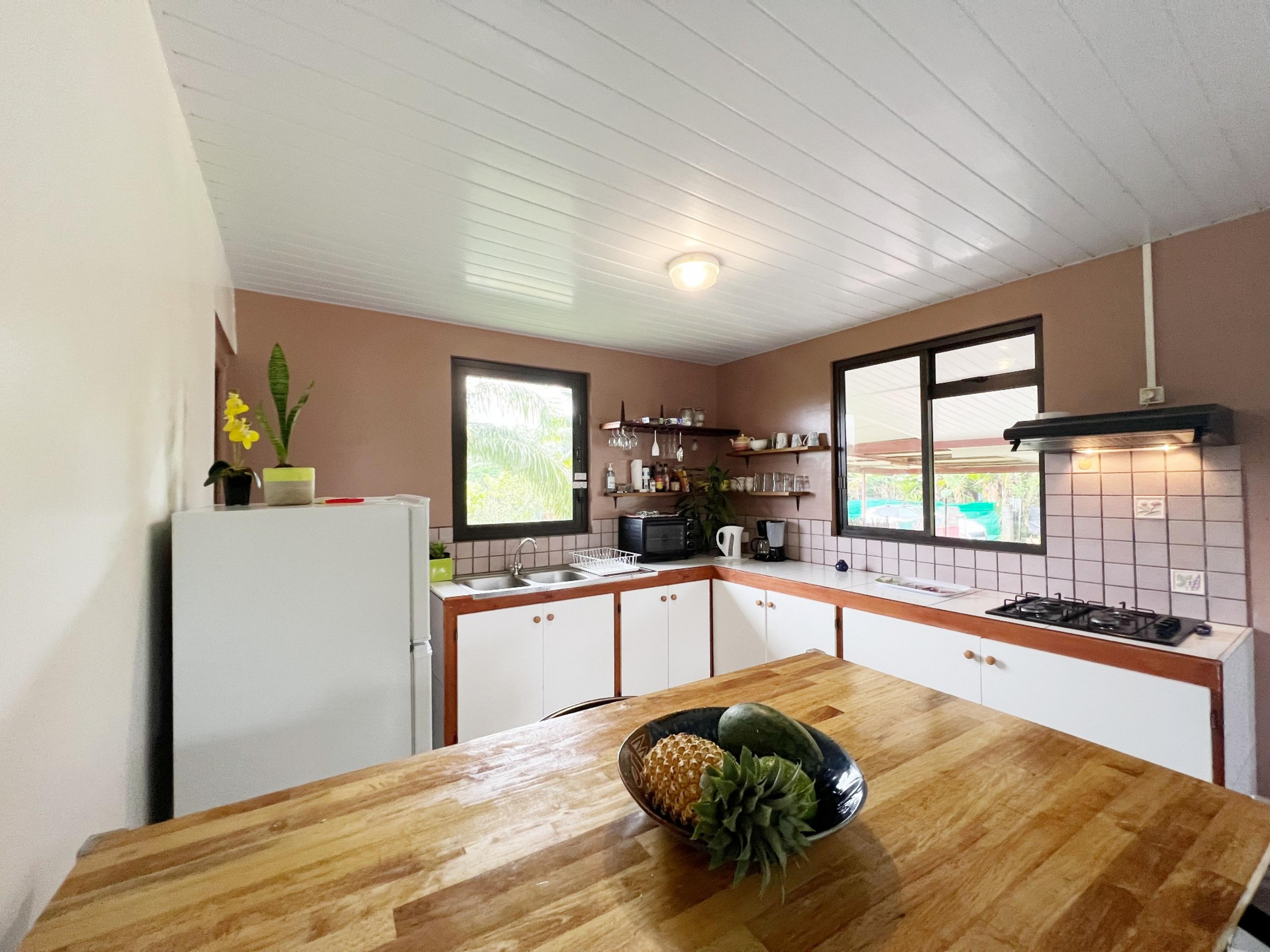Fare Toru and Fare Piti are 2 bungalows of 50m² and 40m² which can each accommodate 3 people (2 adults and 1 child).