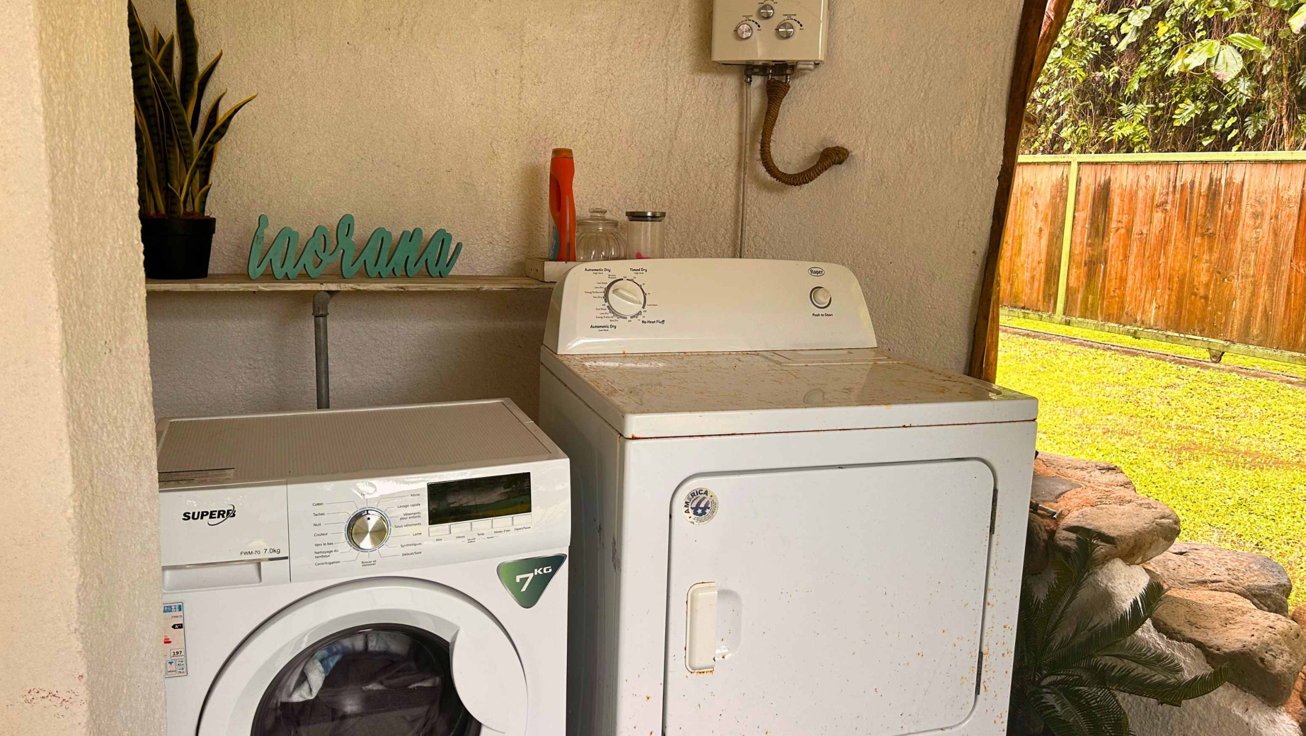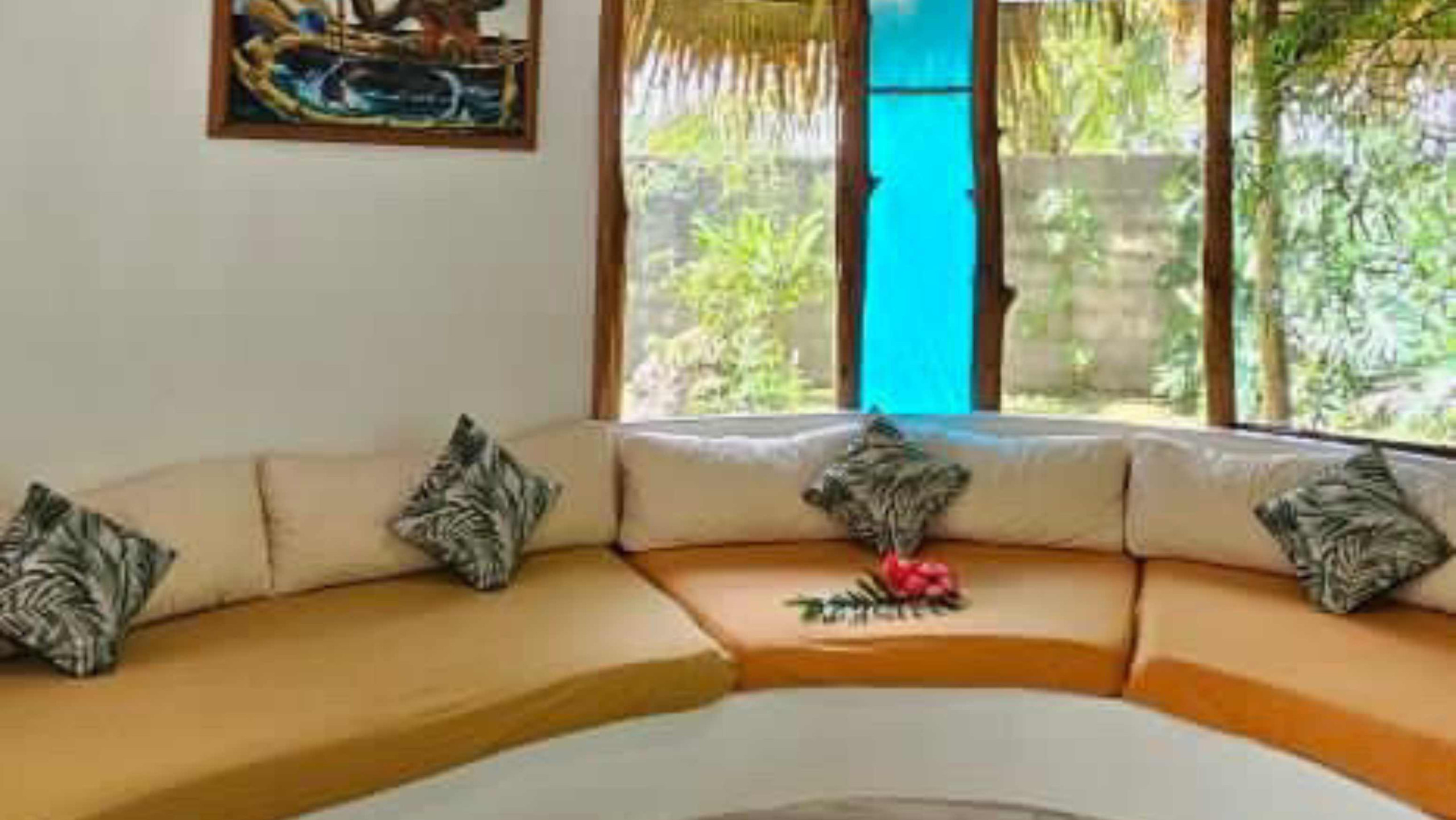 Outdoor space: enjoy an indoor/outdoor living space in Tahitian style with a private outdoor shower surrounded by nature. Start your day with a cup of coffee on the terrace and unwind after a day of exploration.