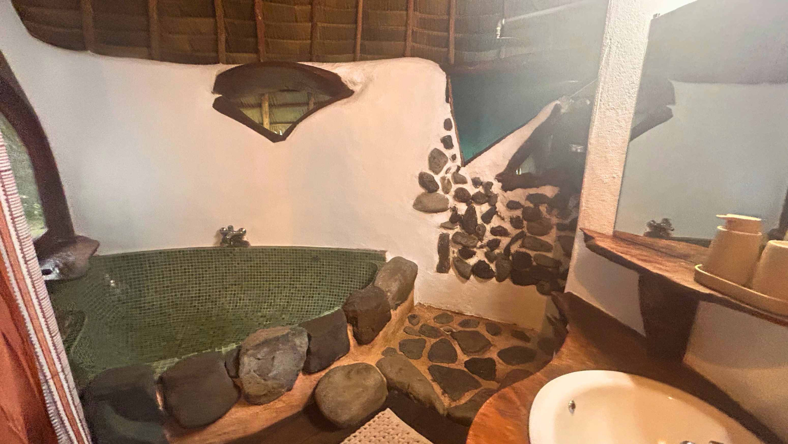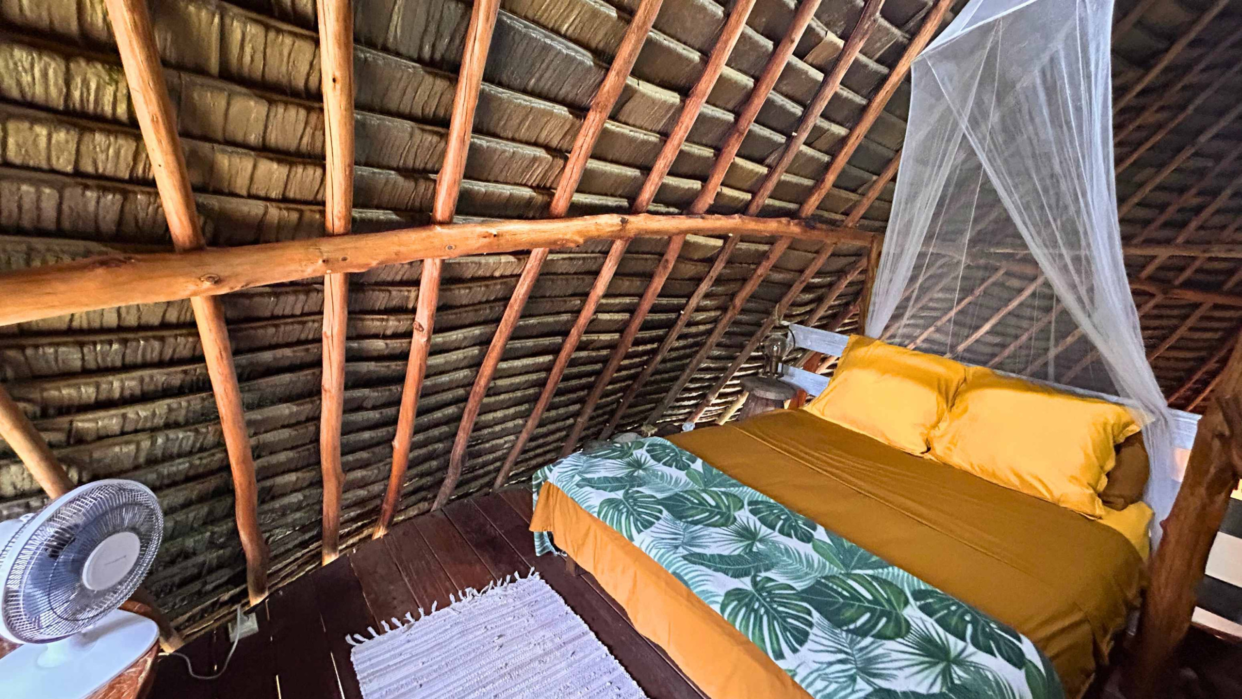 Bungalow 2: room with queen-size bed, en-suite bathroom and WC. Fan available, although the nights remain pleasantly cool