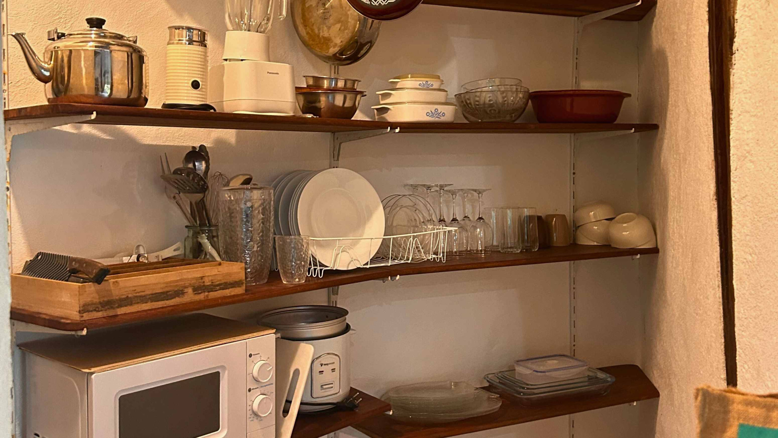 A gym just for you, equipped with a rowing machine, weights, kettlebells, to stay in shape during your holiday.