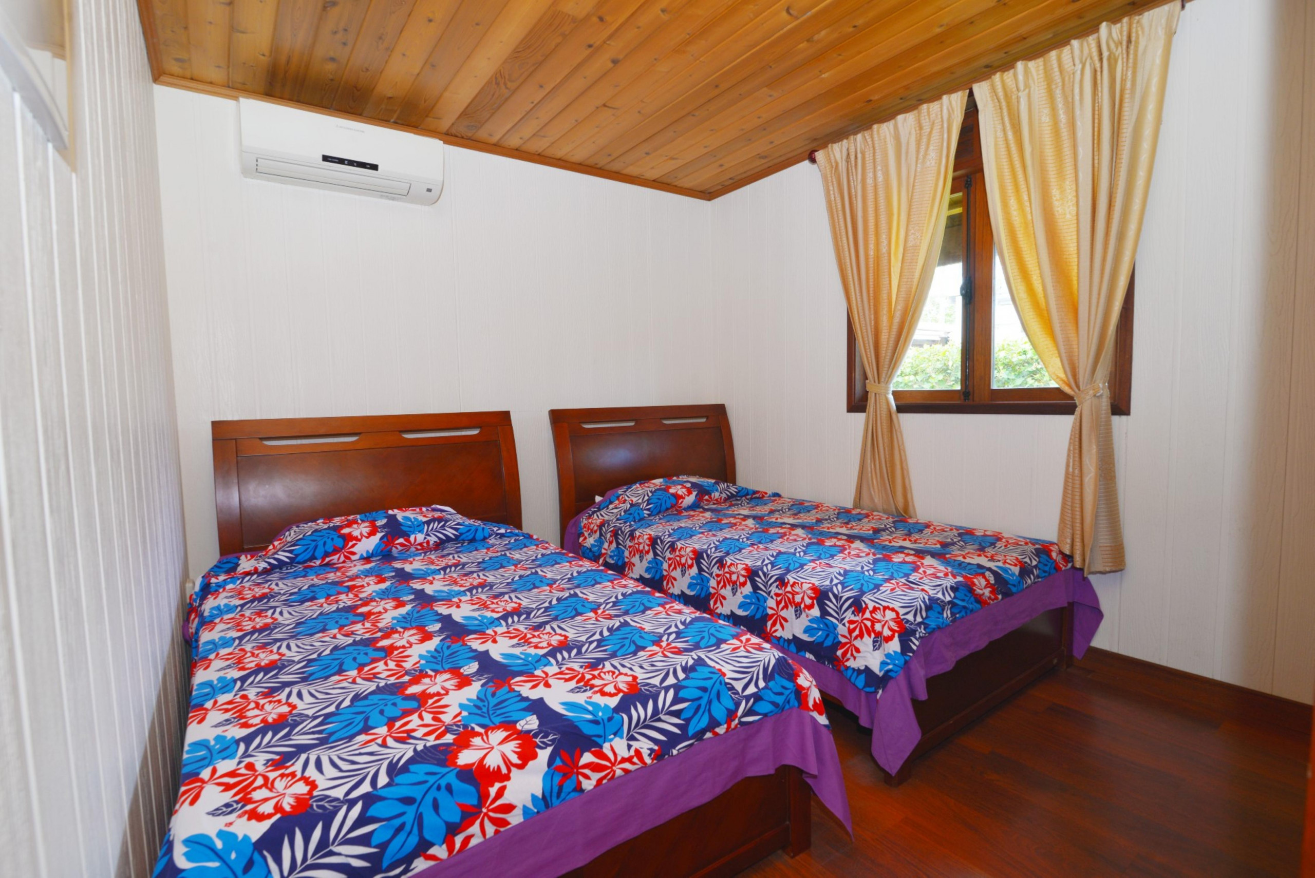 The second bedroom is also air-conditioned and equipped with two single beds and a wardrobe.