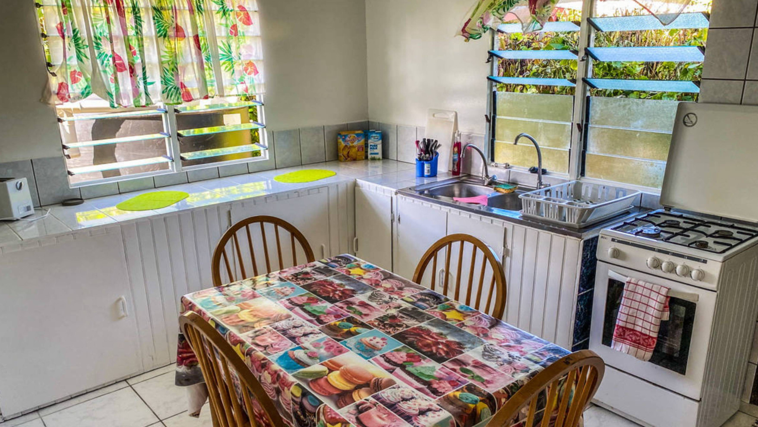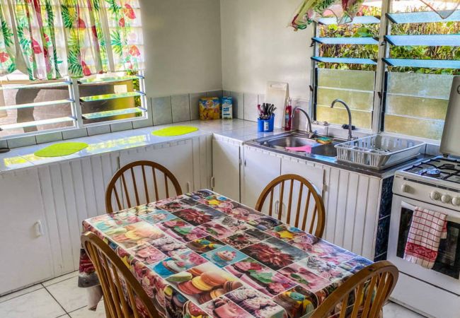Outside, you will enjoy a private terrace overlooking a family garden, ideal for sharing meals or savouring the tranquillity of the place. For added comfort, wifi, fans, as well as household linen and towels are provided. A washing machine is available outside (laundry service: 1000 XPF).