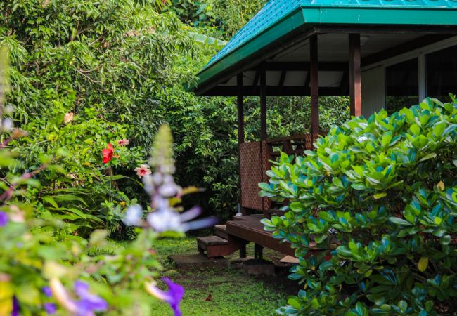 The bedroom has a King Size bed and 2 single beds, ideal for a family of 4. The bathroom is private with sink, shower and toilet. A private terrace with lagoon view and equipped with a table and chairs is available. The property is located in the heart of a pretty tropical garden with trees and flowers. A barbecue area is at your disposal for a moment in a convivial atmosphere around a few grills. Continental breakfast and dinner is provided by your host. Your taste buds will discover traditional Polynesian cuisine, often composed of seafood, lagoon or offshore fish, seasonal vegetables and fruit, barbecue with exotic flavors ...