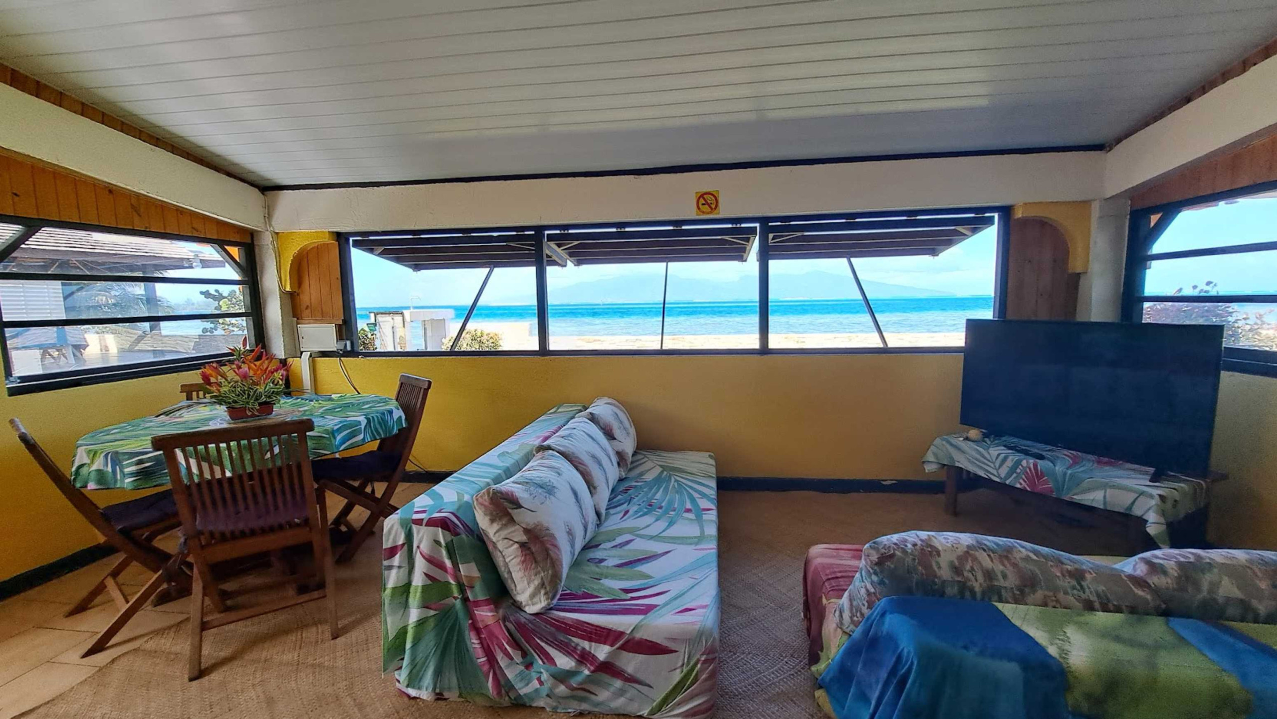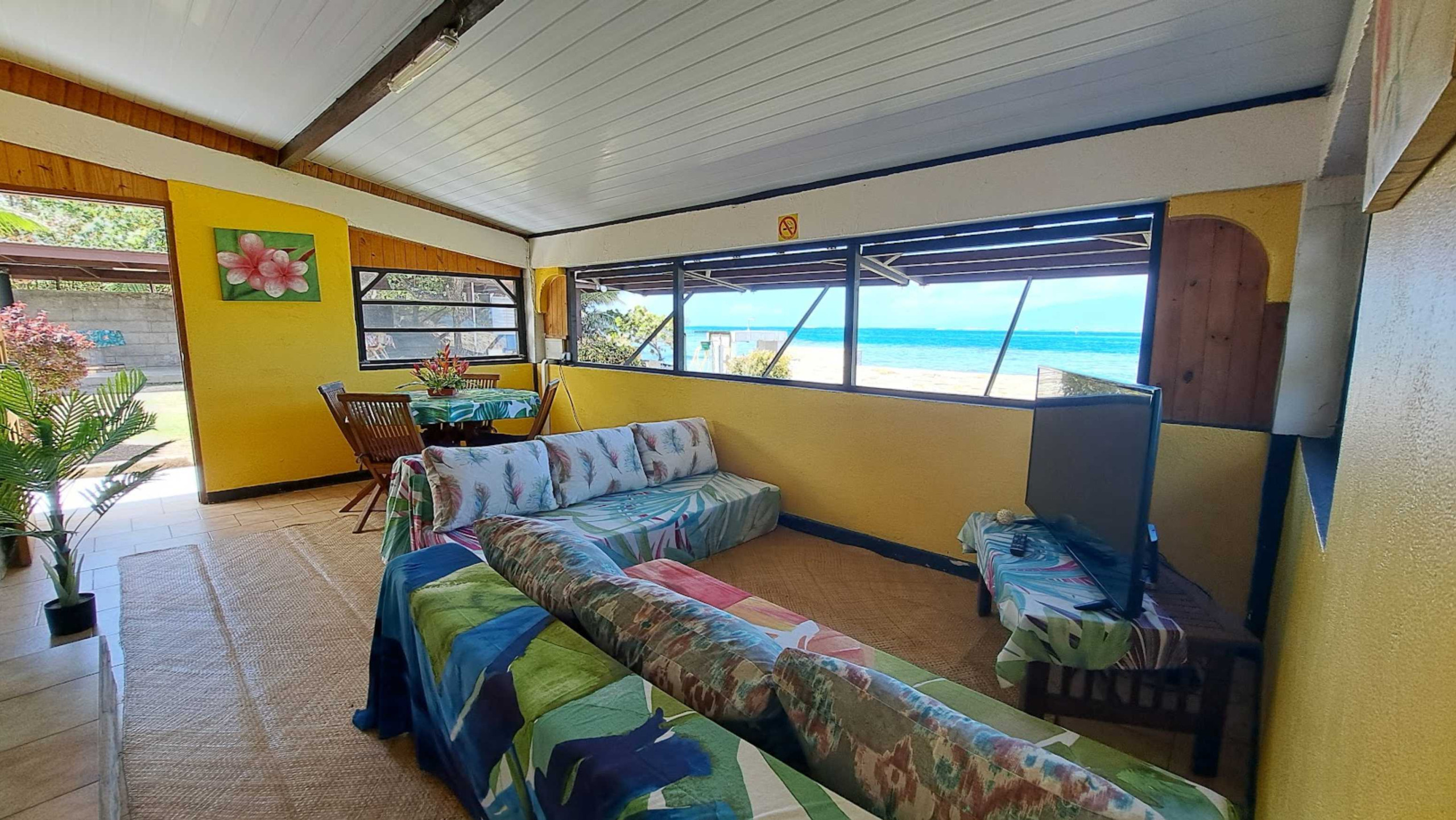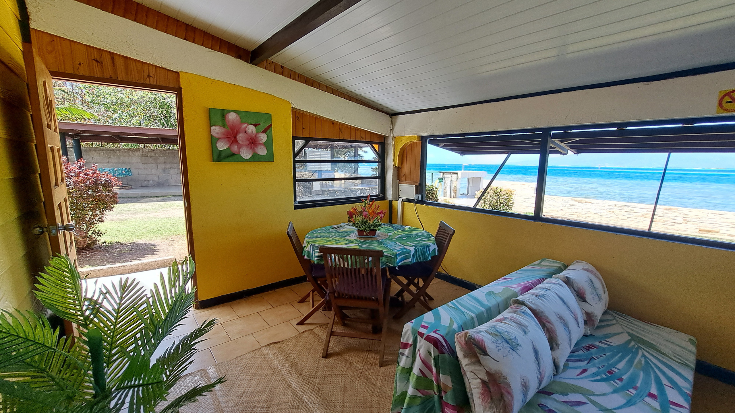 The main room consists of an open-plan kitchen and dining area. The living space, with 2 sofa beds, a TV and a small coffee table, is located on the front line with a stunning view of the lagoon.