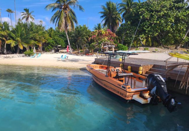 On the programme: fishing, mask and snorkel, lounging under coconut trees, island visit, pearl farm, picnic on Motu, discovering the atoll by boat...