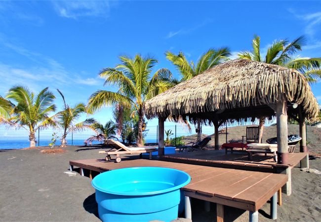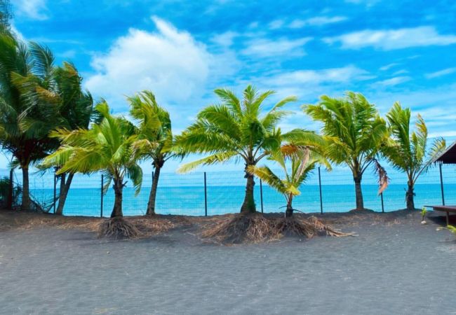 Traditional fare of the Polynesian islands, it is located on the second line, just opposite the superb black sand beach of Taharuu, in the Papara district. Allow 40 minutes to travel from the airport to your accommodation.