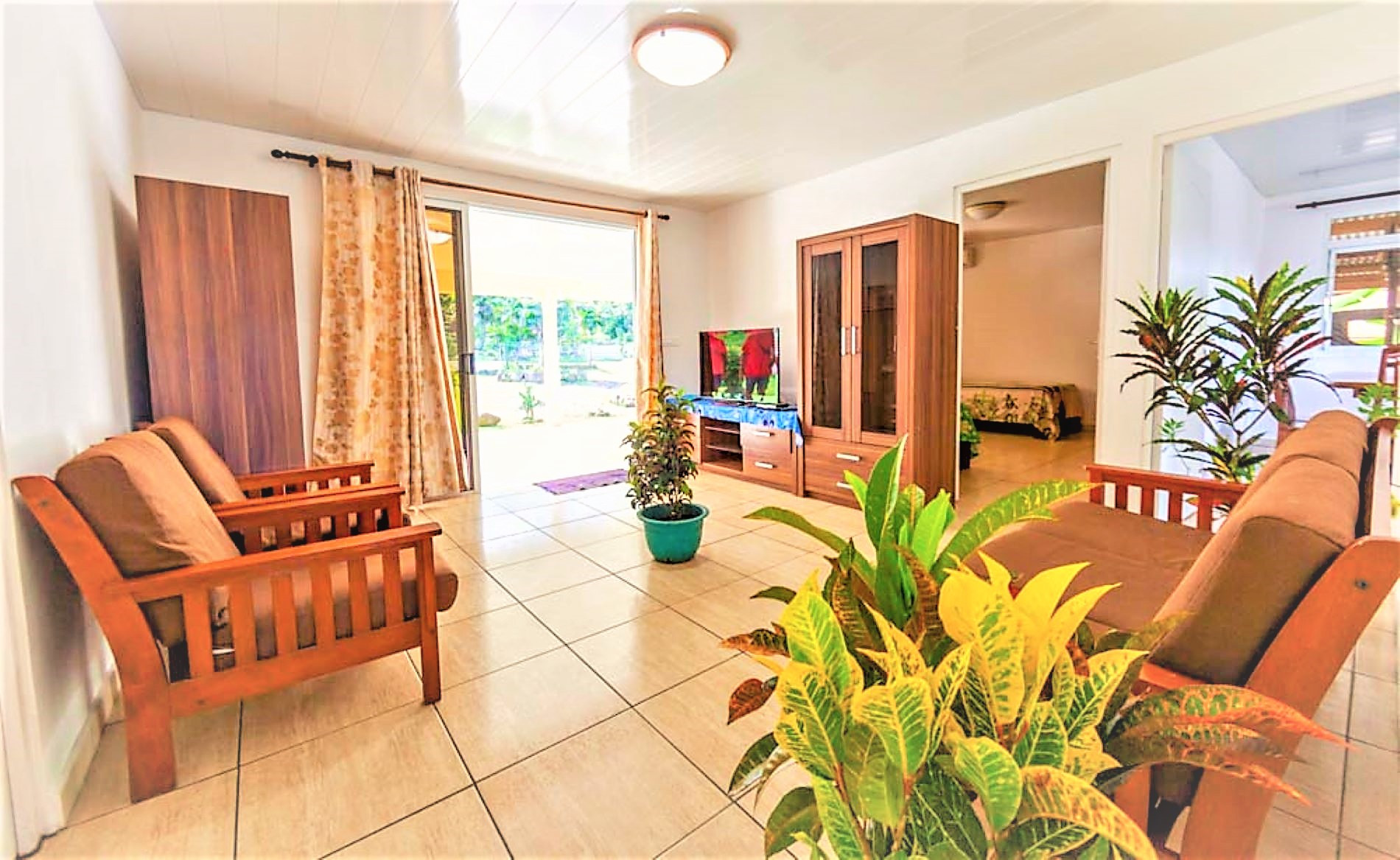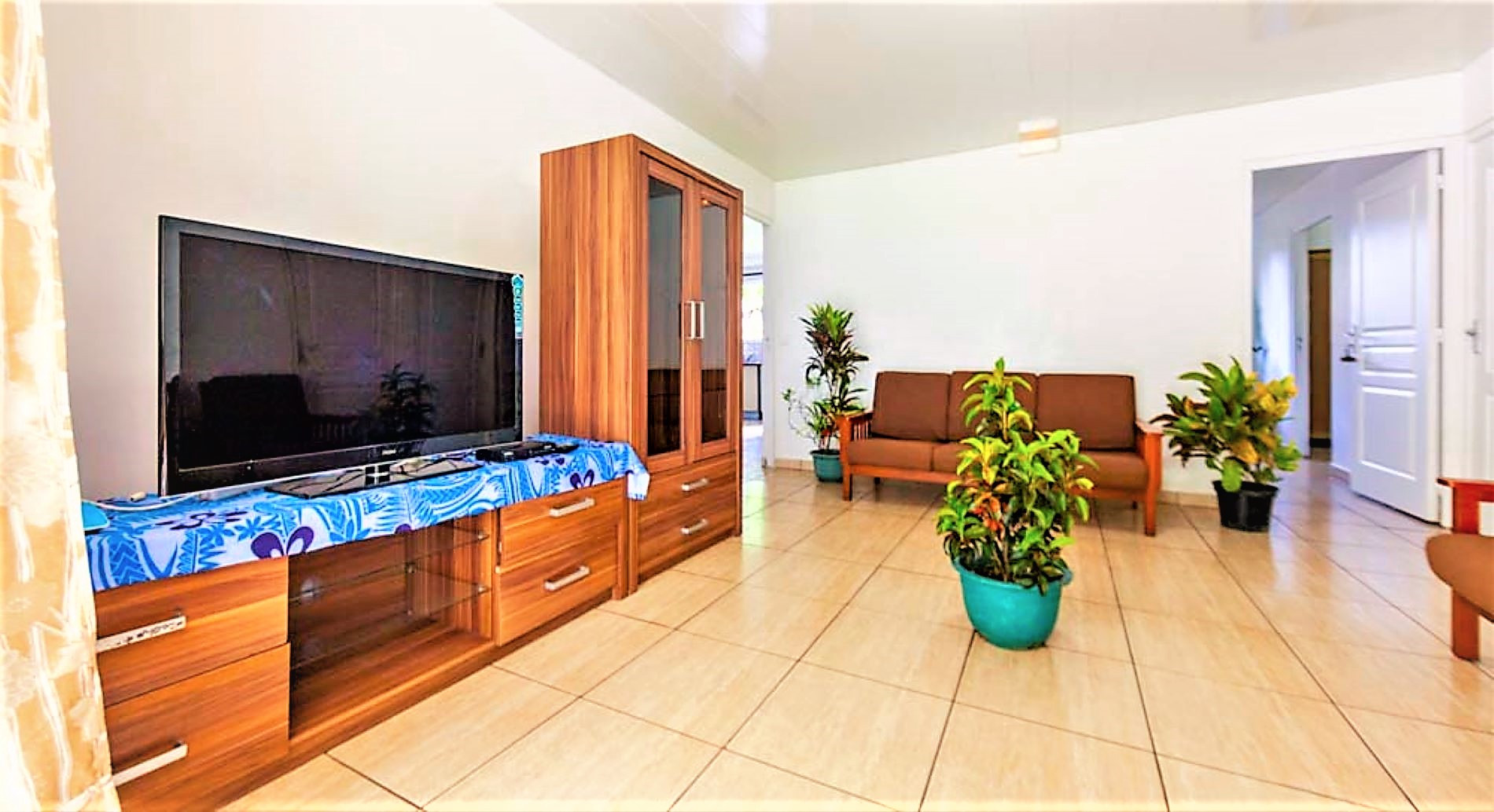 The living room is very comfortable, equipped with a sofa, 2 armchairs and a flat screen TV. You can follow or discover the programs of local and French channels.