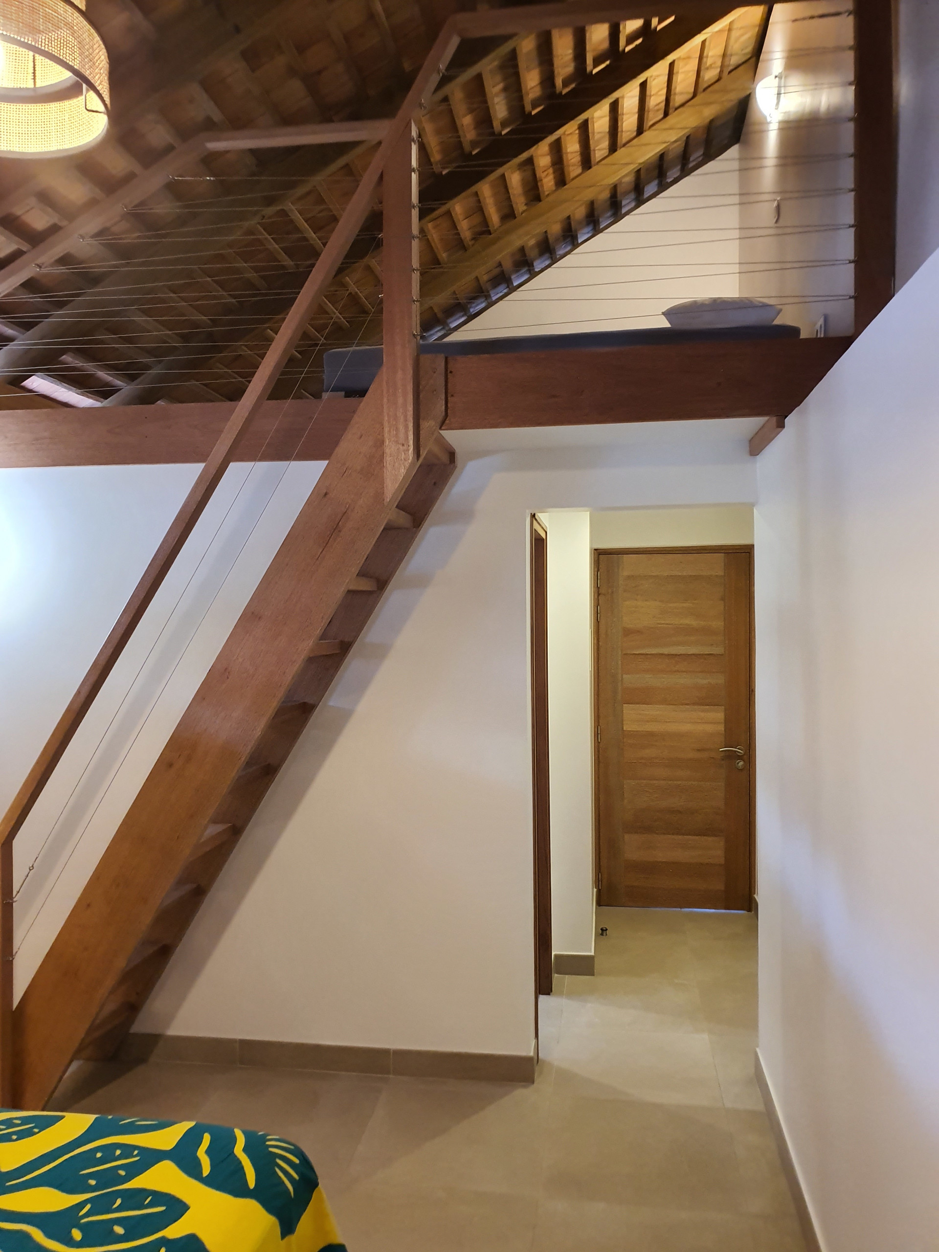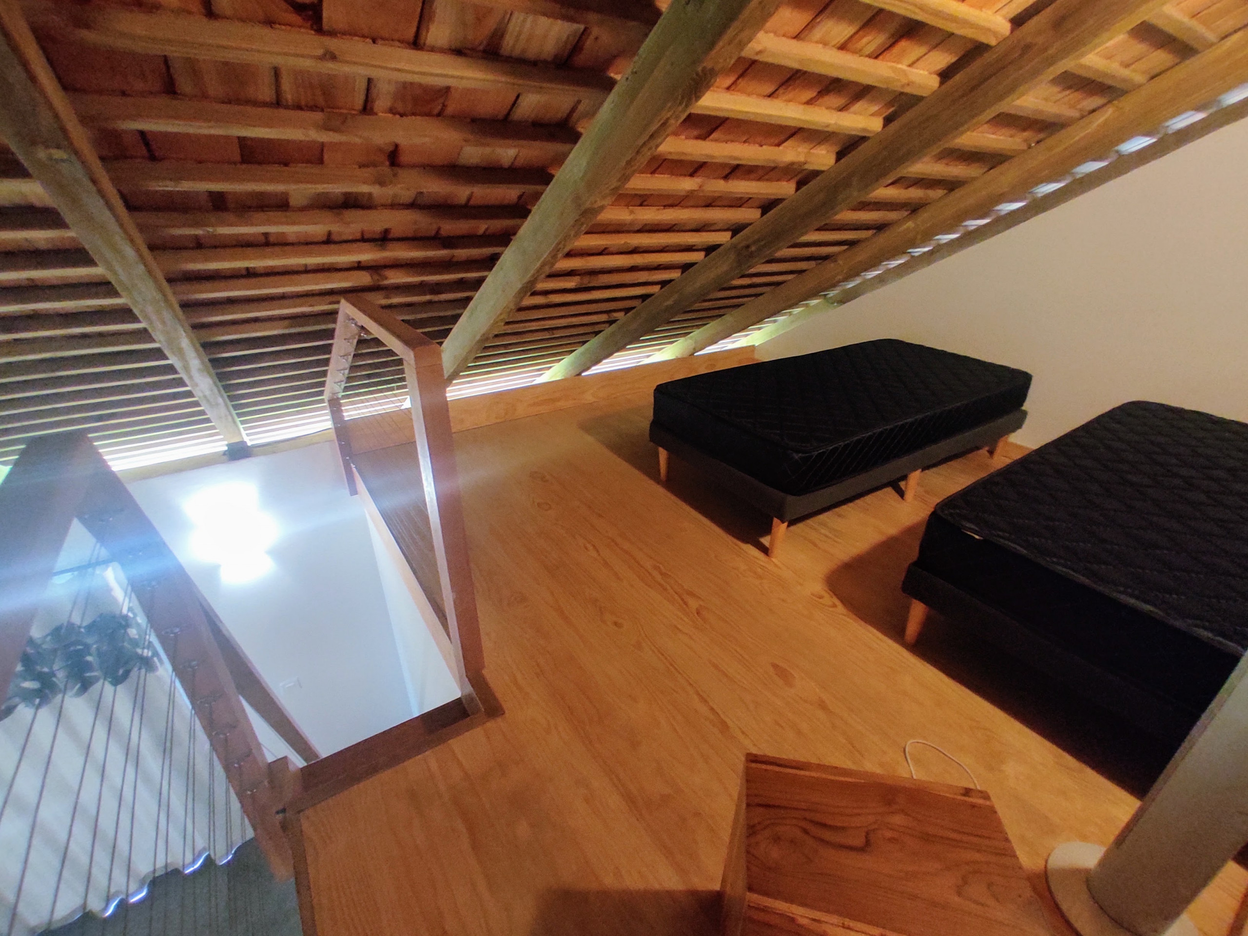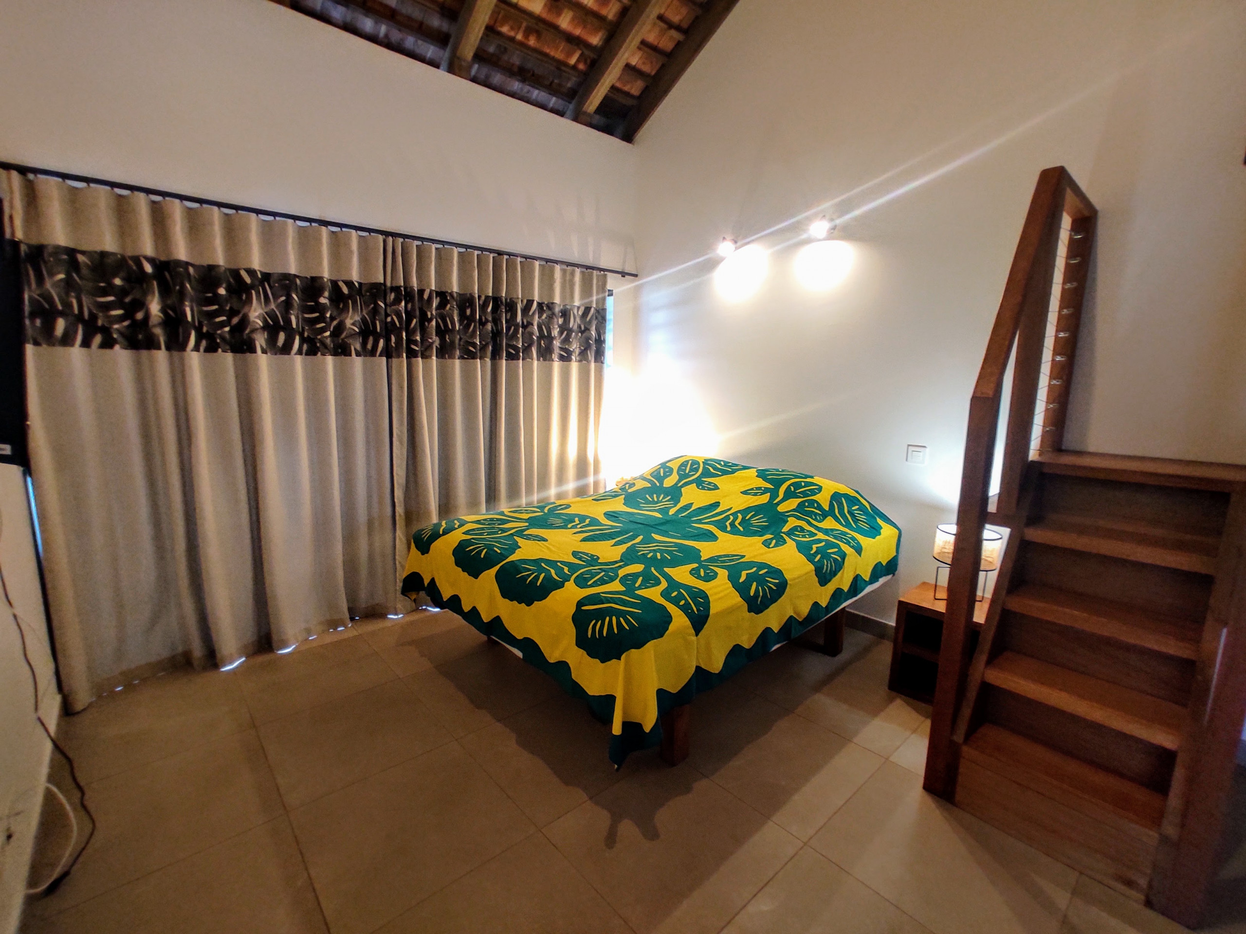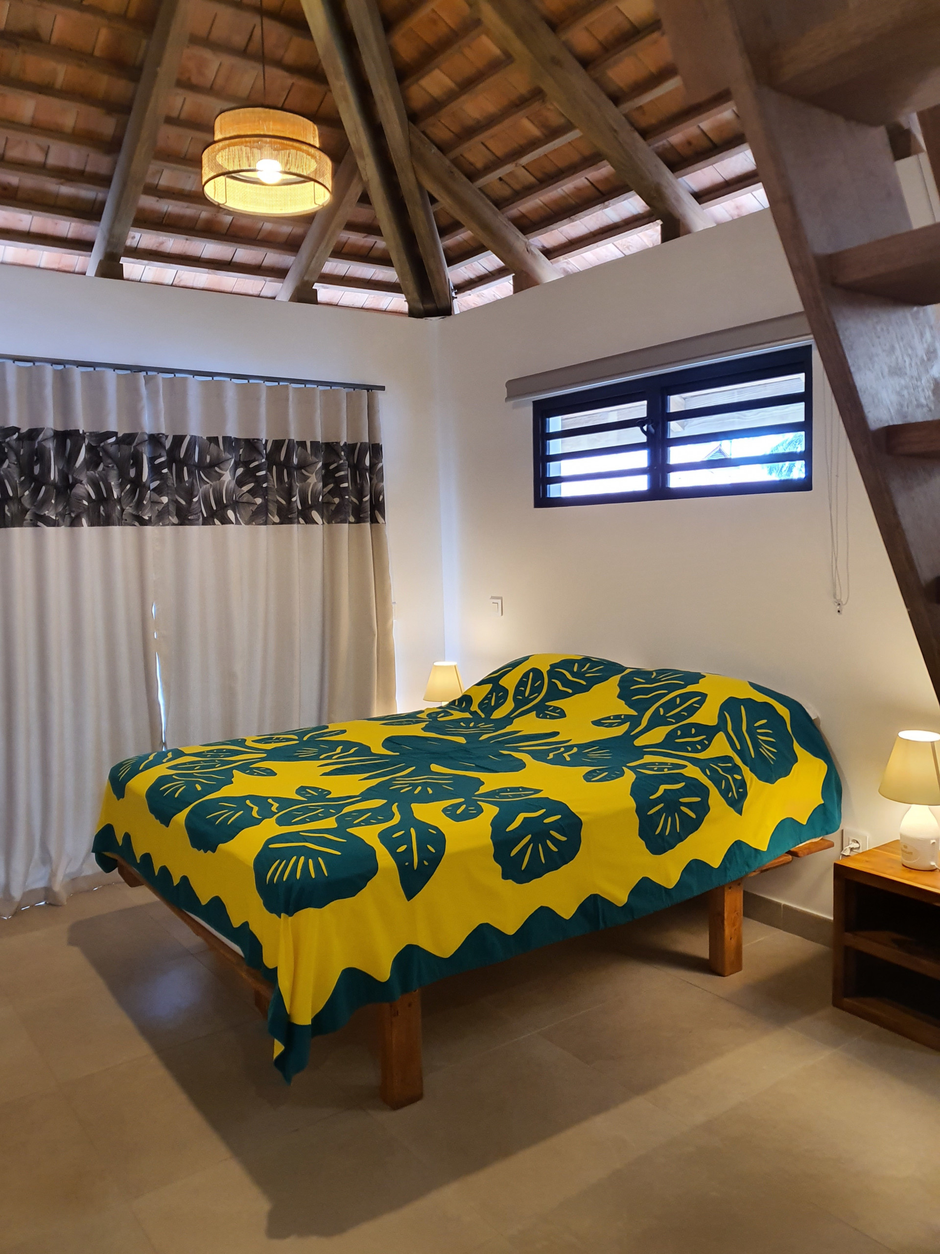 The house is composed of 2 private and air-conditioned bedrooms, each with 1 double bed and 1 mezzanine with 2 single beds.