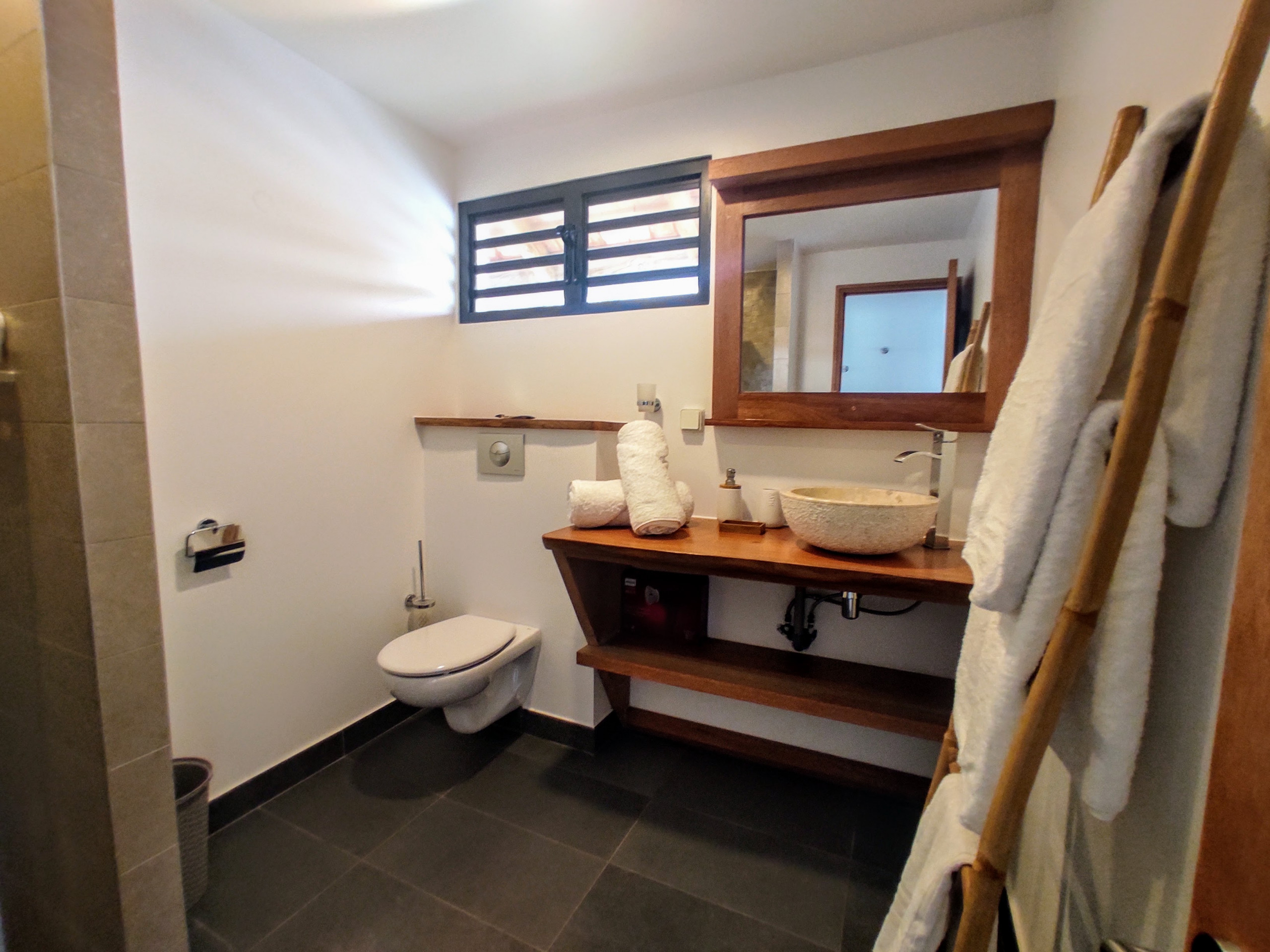 Each room has its own bathroom with washbasin, toilet and shower. An independent toilet is located in the main room.
